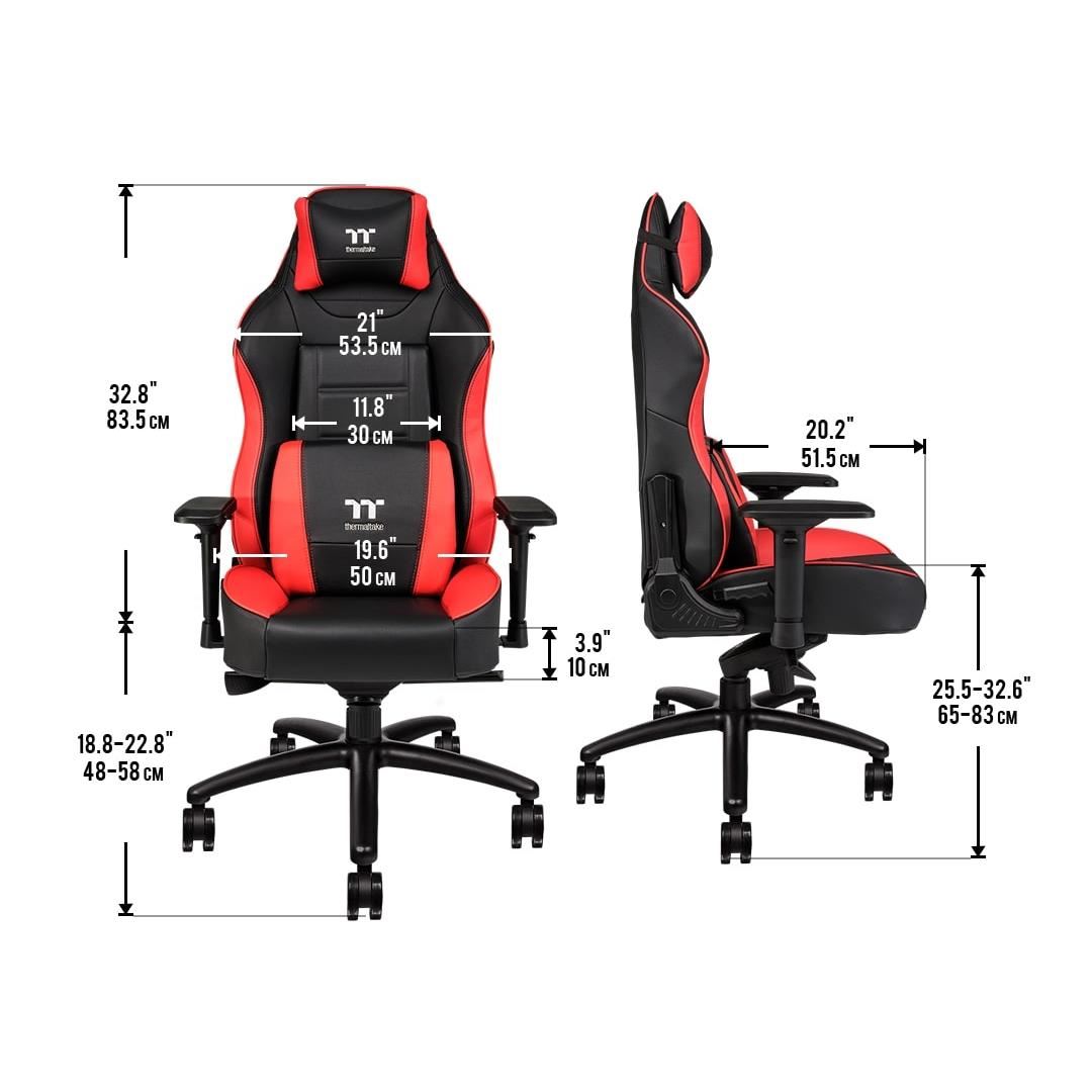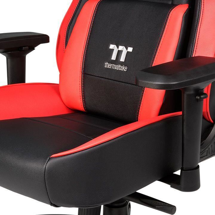 Scaun gaming Tt eSPORTS X Comfort negru cu rosu, cadru din otel, baza din aluminiu, captusit cu spuma densa (75kg/m3) pentru ergonomie si conform ridicate, permite diverse reglaje: inaltime, inclinare 85°-160°, rotire 360°, manere reglabile 4D, material captuseala: piele PVC premium, echipat cu piston cu gaz clasa 4, adancime zona sezut: 51.5cm, latime zona sezut: 50cm, inaltime scaun reglabila: 48-58cm, inaltime spatar: 83.5cm, latime spatar: 53.5cm, inaltime scaun: 131.5-141.5cm, greutate maxima: 150kg, greutate scaun: 27kg