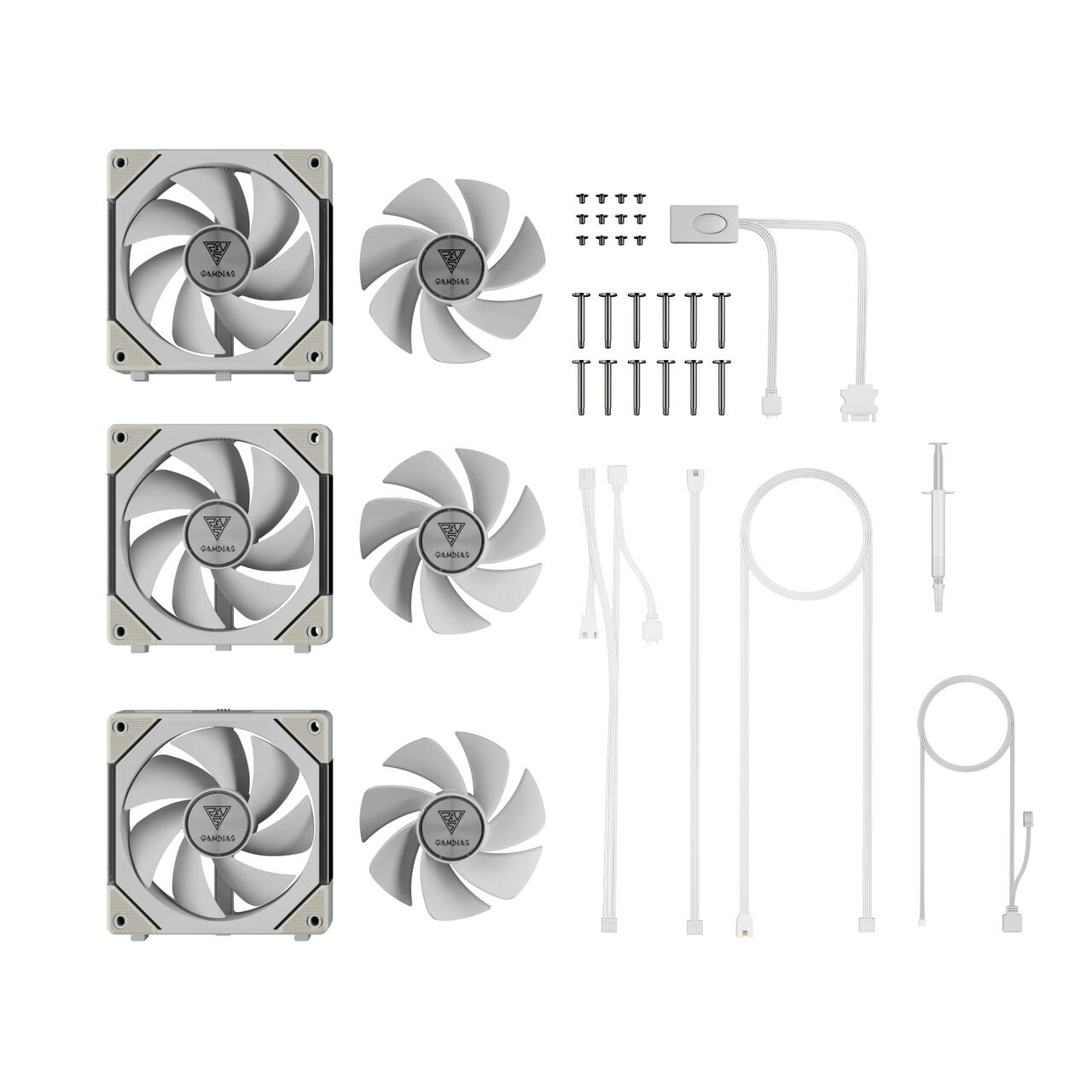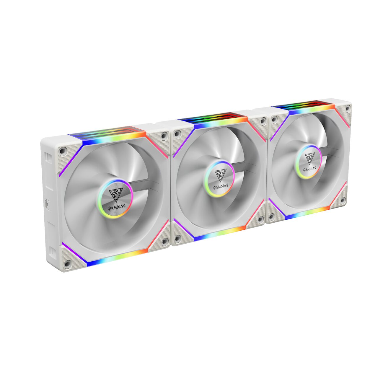Set 3 ventilatoare Gamdias Aeolus P2 1203 120mm albe iluminare aRGB