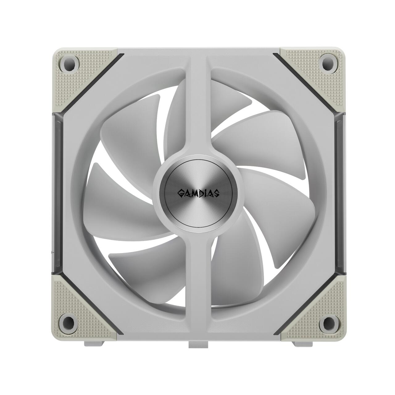 Set 3 ventilatoare Gamdias Aeolus P2 1203 120mm albe iluminare aRGB, iluminare LED aRGB pe ambele fete ale ventilatorului si 2 infinity mirror cu 30 de moduri de iluminare, tip rulmet: Hydraulic Bearing, 1000 - 2400 RPM±10%, 74.97 CFM, 3.1 mmH2O, daisy chain (ventilatoarele se conecteaza intre ele fara cabluri), include controller, pachetul contine un set suplimentar de pale reverse, compatibil iesirile de LED adresabil 3pin 5V Asus AURA / Gigabyte RGB Fusion / MSI Mystic Light Sync, software de configurare Zeus Cast, dimensiuni: 120x120x30mm