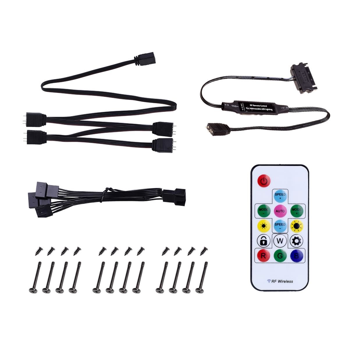Set 3 ventilatoare ID-Cooling DF-12025 120mm iluminare aRGB, rulmenti de tip 2Ball Bearing, sistem de montare anti-vibratii, 900-2000 RPM, 56.5 CFM, 16.2-31.5 dBA, 1.99 mmH2O, cablu plat, conector 4pin PWM si 3pin aRGB, compatibil Asus Aura Sync/Gigabyte RGB Fusion/MSI Mystic Light, dimensiuni: 120x120x25mm, greutate: 150g