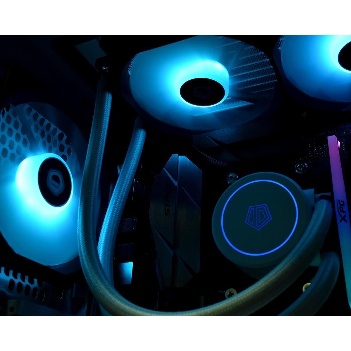 Set 3 ventilatoare ID-Cooling XF-12025 120mm iluminare aRGB, rulmenti de tip Hydraulic Bearing, sistem de montare anti-vibratii, 700 - 1500 RPM, 62CFM, 18-26.4 dBA, cablu plat, conector 4pin pentru ventilatoare si conector 3pin pentru pentru iluminare RGB adresabila, pachetul contine cabluri adaptor pentru montare, compatibil Asus Aura Sync/Gigabyte RGB Fusion/MSI Mystic Light/ASRock Polychrome Sync, dimensiuni: 120x120x25mm, greutate: 150g