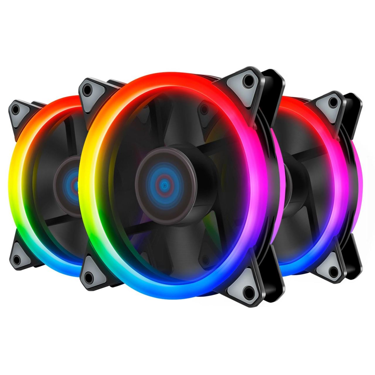 Set 3 ventilatoare Inaza Specter Pro aRGB, iluminare Ring LED RGB pe ambele fete ale ventilatorului cu multiple moduri de iluminare, 1200 RPM±10%, 16 dBA, cablu plat, include telecomanda si hub (suporta pana la 8 ventilatoare si 2 benzi LED), compatibil cu iesire RGB adresabila a placilor de baza, include telecomanda, dimensiuni: 120x120x25mm