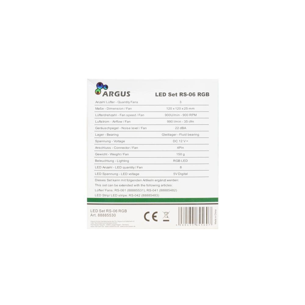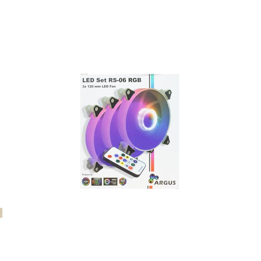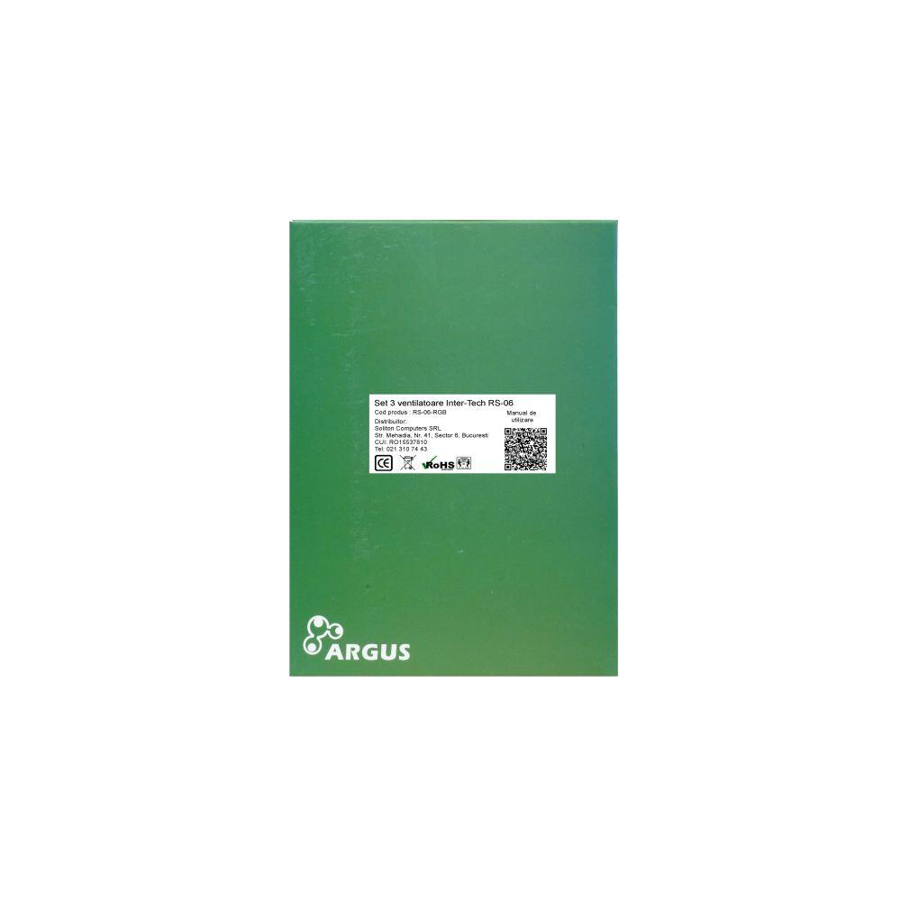 Set 3 ventilatoare Inter-Tech RS-06 120mm iluminare aRGB, iluminare LED aRGB pe rotorul ventilatorului cu peste 300 de moduri de iluminare, 1200 RPM±10%, 59.47 CFM, 22 dBA, include telecomanda si hub (suporta pana la 8 ventilatoare si 2 benzi LED), compatibil header RGB adresabil, dimensiuni: 120x120x25mm