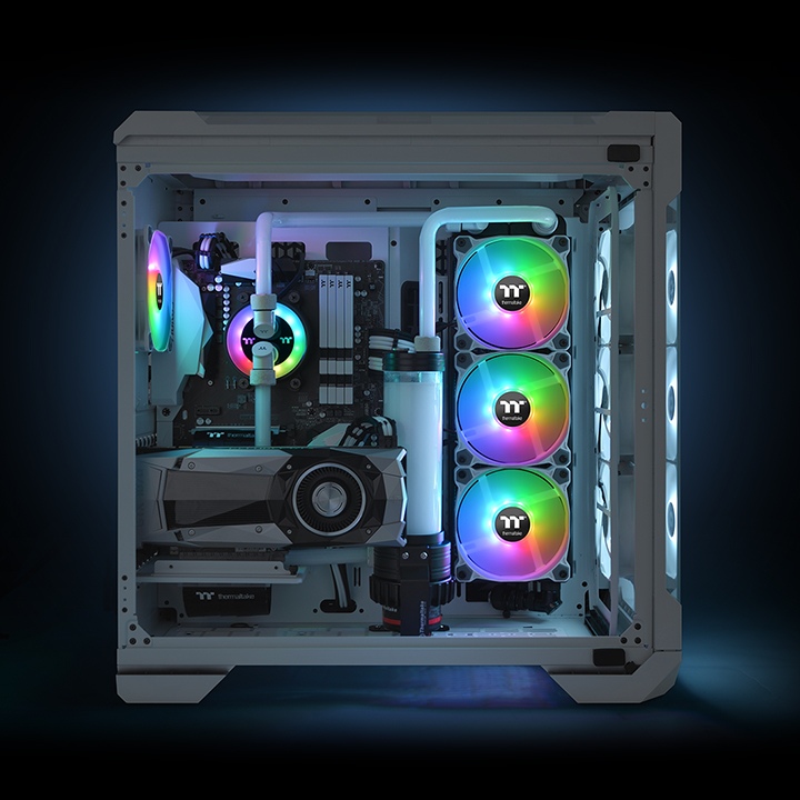 Set 3 ventilatoare Thermaltake Pure 12 ARGB 120mm albe iluminare adresabila RGB
