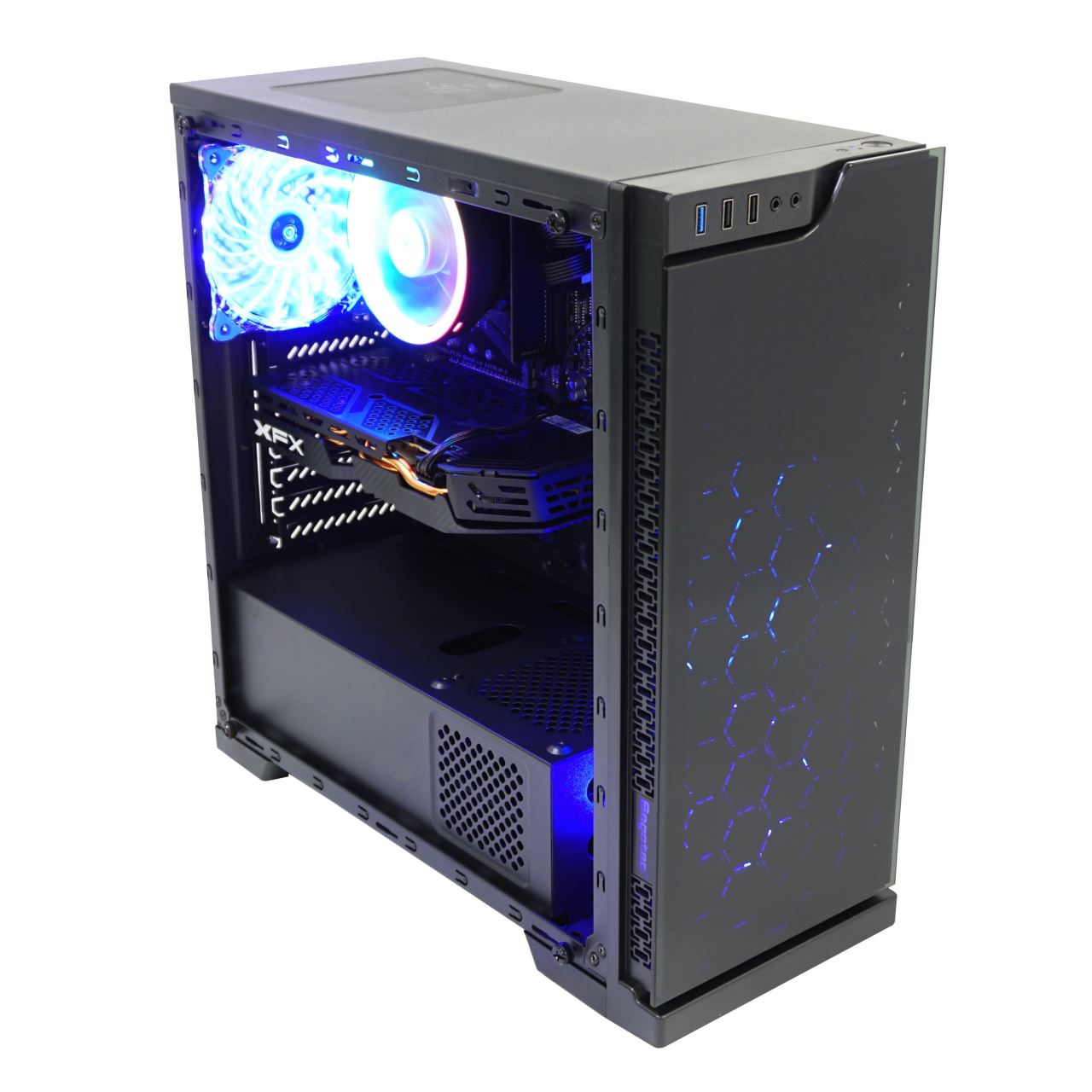 Sistem gaming Inaza Jugger V2, procesor AMD Ryzen 5 3400G, quad-core, frecventa nominala: 3.7Ghz, frecventa turbo: 4.2Ghz, cache: 4Mb, tehnologie de fabricare: 12nm, memorie RAM: 8Gb, XFX ATI RX580 8GB GDDR5 256 bit, mediu de stocare: HDD+SSD, capacitate SSD: 240Gb, capacitate HDD: 1TB, port-uri back-panel: 1x HDMI / 1x LAN RJ45 / 4x Porturi USB 3.0 / 2x Porturi USB 2.0 / 3x jack-uri audio (intrare semnal, iesire semnal, microfon) / 2x PS2 (tastatura/mouse) / 1x 15-pin D-sub / 1x DVI-D, port-uri front-panel: 1x USB 3.0 / 2x USB 2.0 / 2x jack-uri audio (iesire semnal, microfon), carcasa tip gaming, sursa de 500W, fara sistem de operare