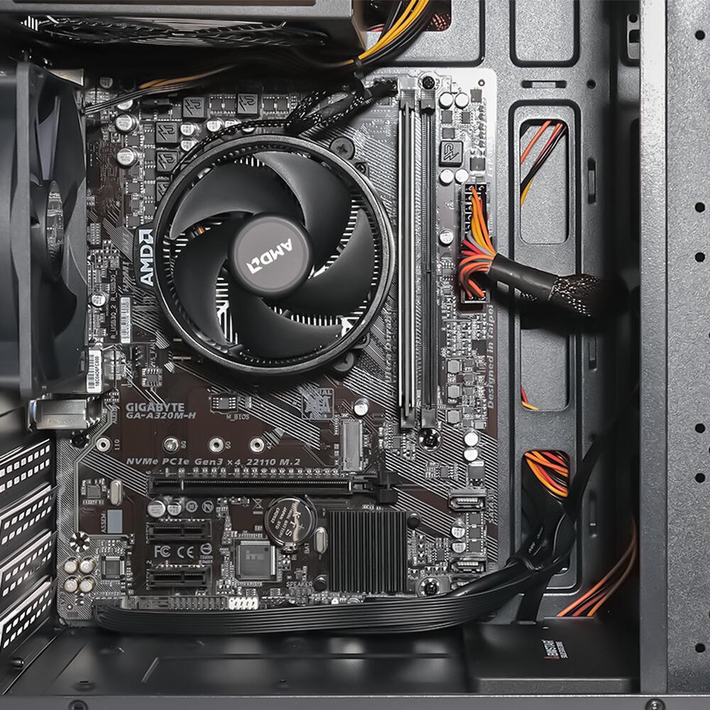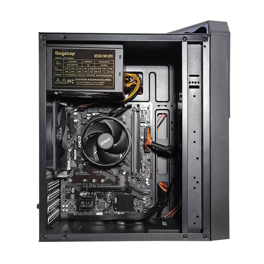 Sistem Desktop PC Gaming, Inaza KNIGHT, AMD Ryzen 3 3200G 4.0 GHz,8GB DDR4, SSD 512GB: , CARACTERISTICI GENERALE: Tip sistem: Desktop PC, Destinat pentru: Gaming, Sistem de operare: Fara sistem de operare, Continut pachet: 1 DESKTOP PC, Lungime: 325 mm, Adancime: 206 mm, Adancime: 350 mm, Greutate: 10 Kg, Culoare: Neagra, PROCESOR: Producator procesor: AMD, Tip procesor: Ryzen 3, Model procesor: 3200G, Numar nuclee: 4, Numar thread-uri: 4, Frecventa nominala: 3.6 GHz, Frecventa Turbo Boost: 4 GHz, PLACA DE BAZA: Socket procesor: AM4, Chipset: A320, Sloturi onboard: 1 x PCI Express x16, 2 x PCI Express x1, 1 x M.2 conector, Porturi Back panel: 1 x HDMI, 1 x LAN RJ45, 4 x Porturi USB 3.1, 2 x Porturi USB 2.0, 3 x audio jacks (Line In, Line Out, Mic In), 2 x PS2 (tastatura/mouse), 1 x DVI-D, Numar total sloturi memorie: 2, Retea: 10/100/1000, MEMORIE RAM: Tip memorie: DDR4, Capacitate memorie: 8 GB, Frecventa memorie: 3200 MHz, Memorie maxima: 64 GB, Sloturi ocupate: 1, CAPACITATE STOCARE: Tip st