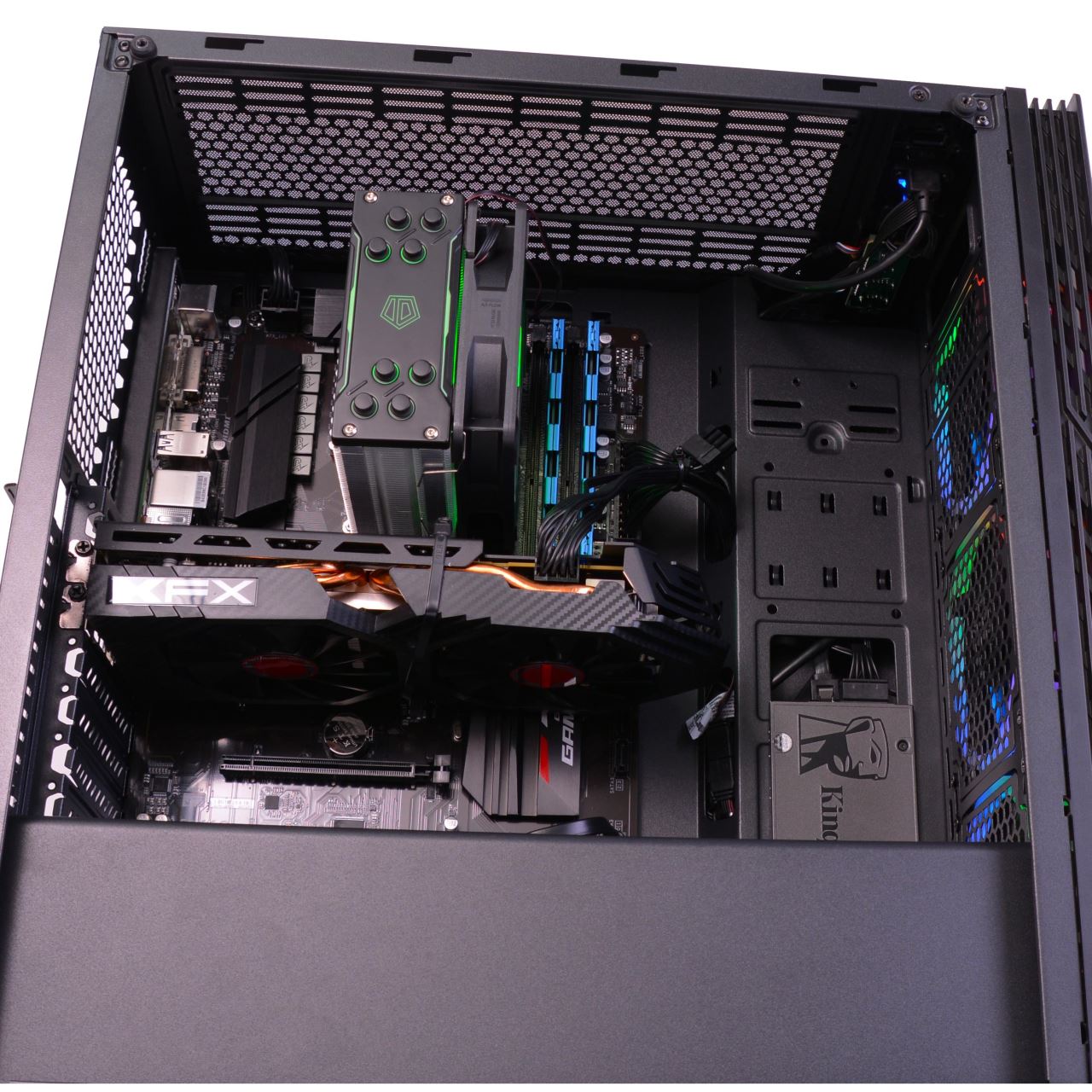 Sistem gaming Inaza T-Rex, procesor AMD Ryzen 5 3600, hexa-core, frecventa nominala: 3.6Ghz, frecventa turbo: 4.2Ghz, cache: 32Mb, tehnologie de fabricare: 7nm, memorie RAM: 16Gb, XFX ATI RX580 8GB GDDR5 256 bit, mediu de stocare: HDD+SSD, capacitate SSD: 480Gb, capacitate HDD: 1TB, port-uri back-panel: 1x HDMI / 1x LAN RJ45 / 4x Porturi USB 3.0 / 2x Porturi USB 2.0 / 6x jack-uri audio (intrare semnal, iesire semnal, microfon) / 1x PS2 (tastatura/mouse) / 1x DVI-D, port-uri front-panel: 1x USB 3.0 / 2x USB 2.0 / 2x jack-uri audio (iesire semnal, microfon), carcasa tip gaming, sursa de 500W, fara sistem de operare