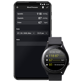 VivoWatch SP este echipat cu o pereche de senzori pentru electrografie (ECG) si fotopletismografie (PPG), care ii permit calcularea timpului de tranzit al pulsului (PTT) precum si masurarea ritmului cardiac, a somnului si a activitatii si nivelului de stres de-a lungul intregii zile, oferindu-ti o varietate de informatii pentru o administrare mai buna a sanatatii.