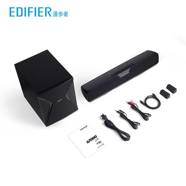 Soundbar bluetooth Edifier G7000 86W negru, sistemul este compus dintr-un soundbar (4 difuzoare de 4”, raspuns in frecventa: 160Hz-20KHz) si un subwoofer wireless (difuzor de 8”, raspuns in frecventa: 40Hz-160Hz), logo-ul soundbar-ului si subwoofer-ul sunt iluminate RGB, conectori soundbar: optic / 2x RCA / AUX 3.5mm jack / USB