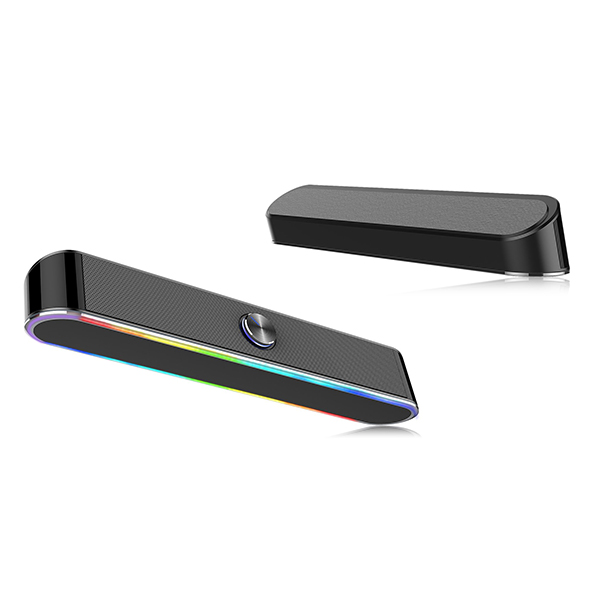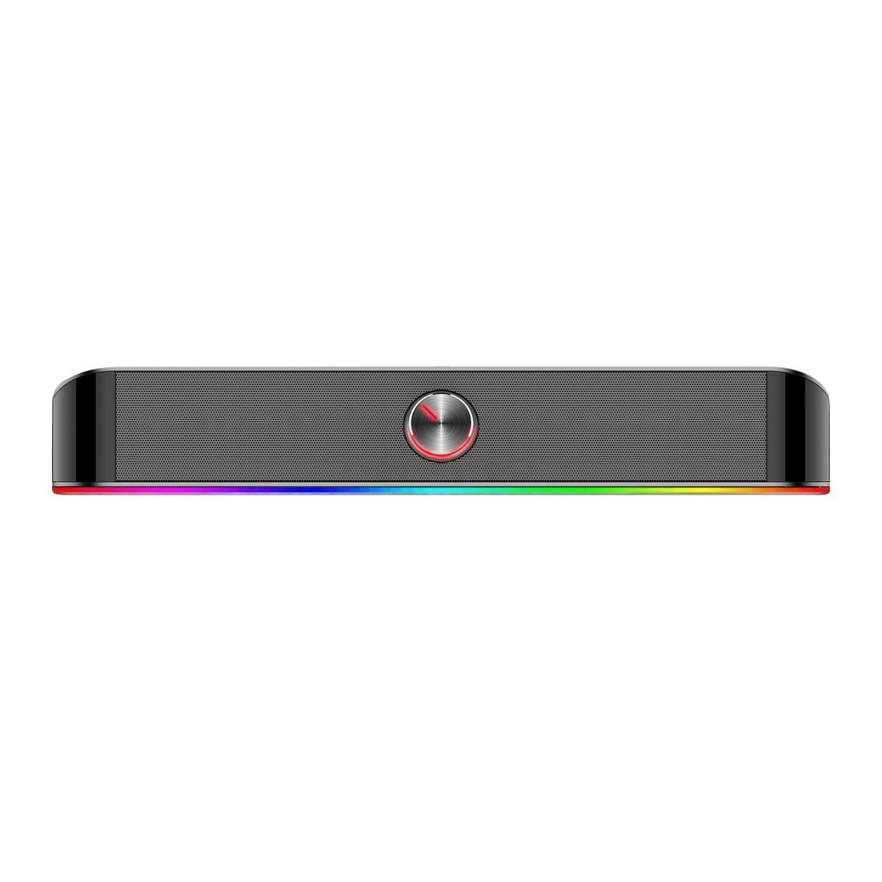 Soundbar Redragon Adiemus negru iluminare RGB, iluminare RGB a soundbar-ului, putere: 6W RMS (3W x 2), dimensiune difuzor: 2”, frecventa: 150Hz~20KHz, ≥65db, conexiuni output: 1x jack 3.5mm TRS, 1x USB, dimensiuni: 400x75x67mm