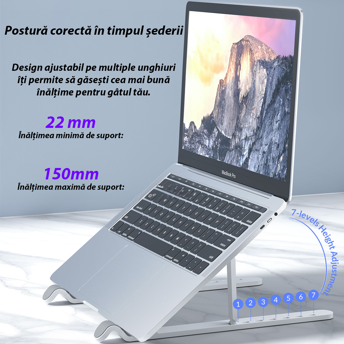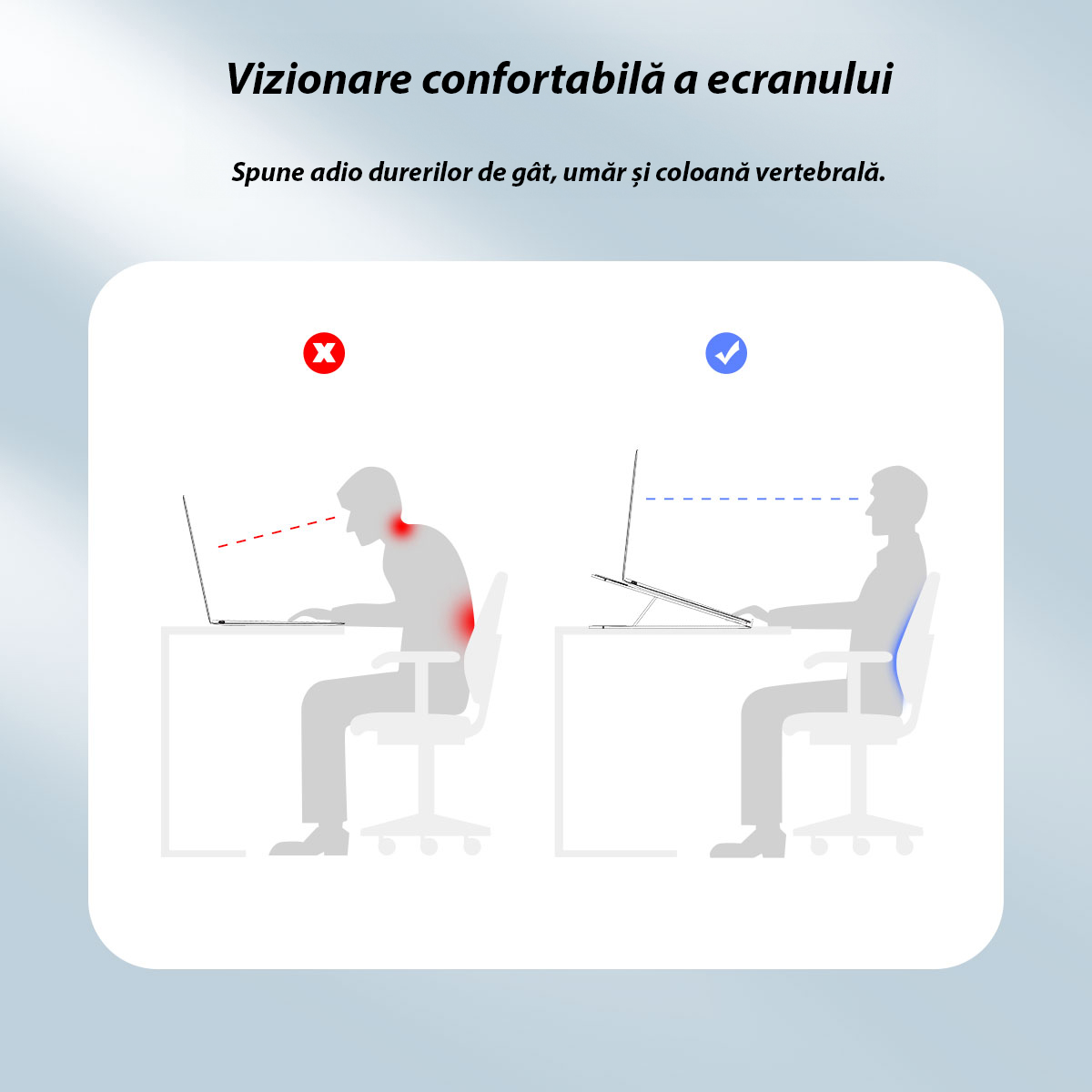 Stand laptop din plastic Orico PFB-A23 pliabil negru, constructie din plastic si silicon, suprafata texturata anti-amprente, design pliabil tip “foarfeca”, pad-uri siliconice anti-alunecare pe toata suprafata de contact cu laptop-ul, inaltime reglabila (7 nivele disponibile), sarcina maxima admisa: 10kg, dimensiune maxima laptop: 17 inch, etui pentru protectie si transport, dimensiuni: 263x190x150mm (desfacut)