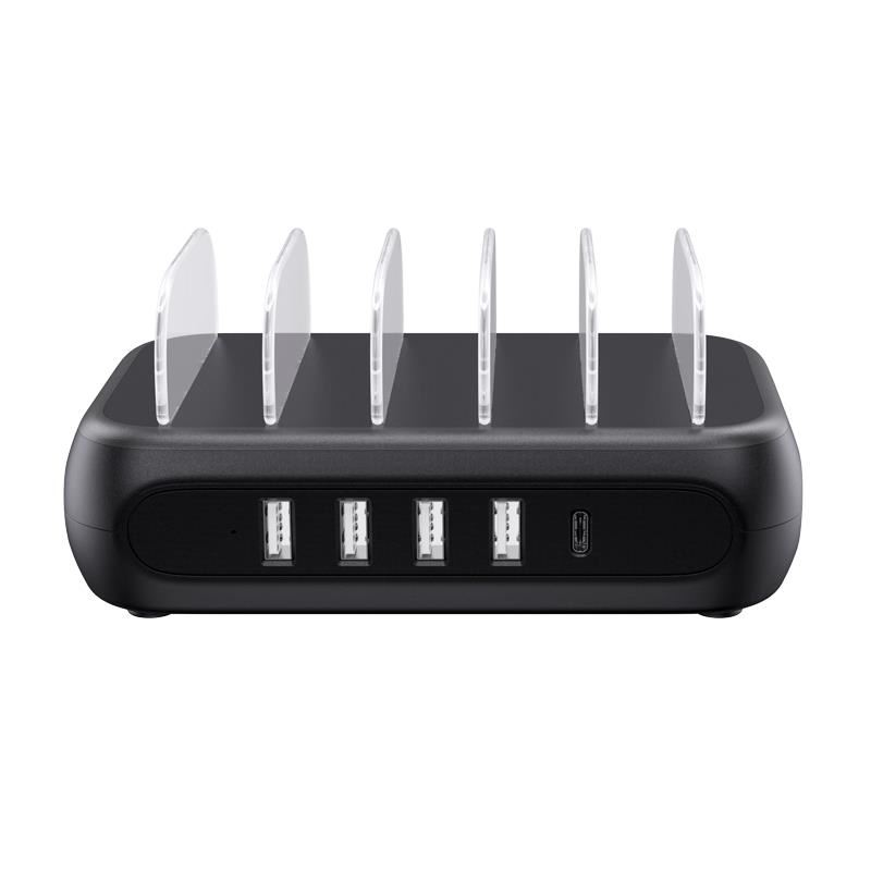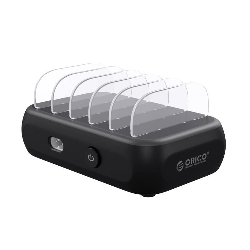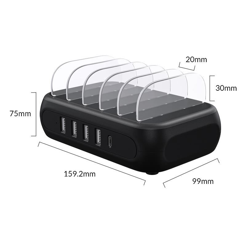 Statie incarcare Orico APD-4U1C neagra, stand si incarcator cu 4 port-uri USB Type-A si 1 port USB Type-C pentru diverse dispozitive (tablete, telefoane mobile, etc.), foloseste circuit inteligent de detectare a curentului corespunzator aparatului conectat (Intelligent Identification IC), iesiri: USB Type-A: 5V/2.4A 12W, USB Type-C: 5V/3A / 9V/2.22A / 12V/1.67A / PD20W, putere maxima: 50W, protectii: short circuit / over current / over voltage / leakage protection, dimensiuni: 160x99x75mm