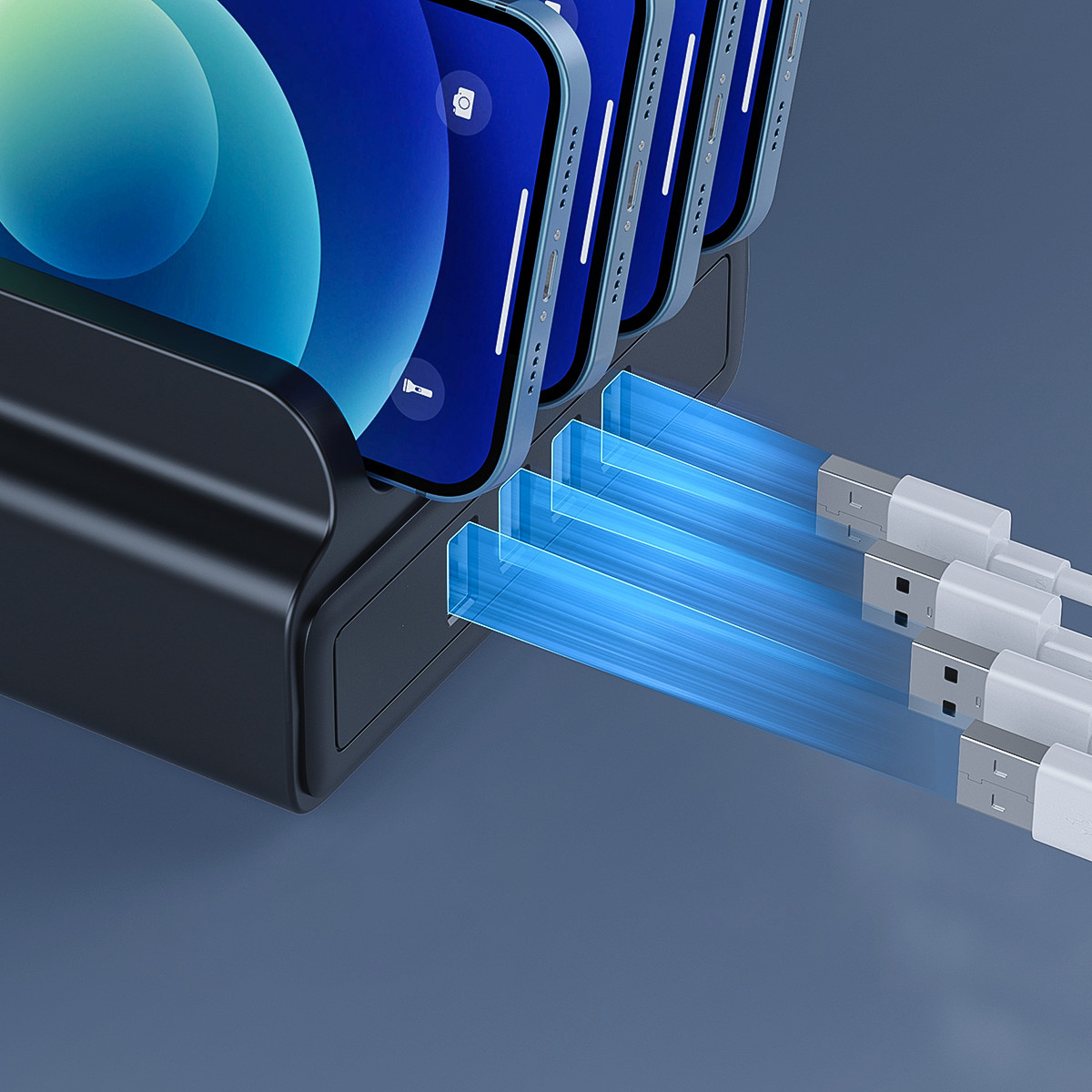 Statie incarcare Orico DUK-4P neagra, stand si incarcator cu 4 port-uri USB pentru diverse dispozitive (tablete, telefoane mobile, etc.), foloseste circuit inteligent de detectare a curentului corespunzator aparatului conectat (Intelligent Identification IC), iesiri: 5V2.4A 12W MAX, putere maxima: 30W, protectii: short circuit / over current / over voltage / leakage protection, dimensiuni: 126x79x65mm