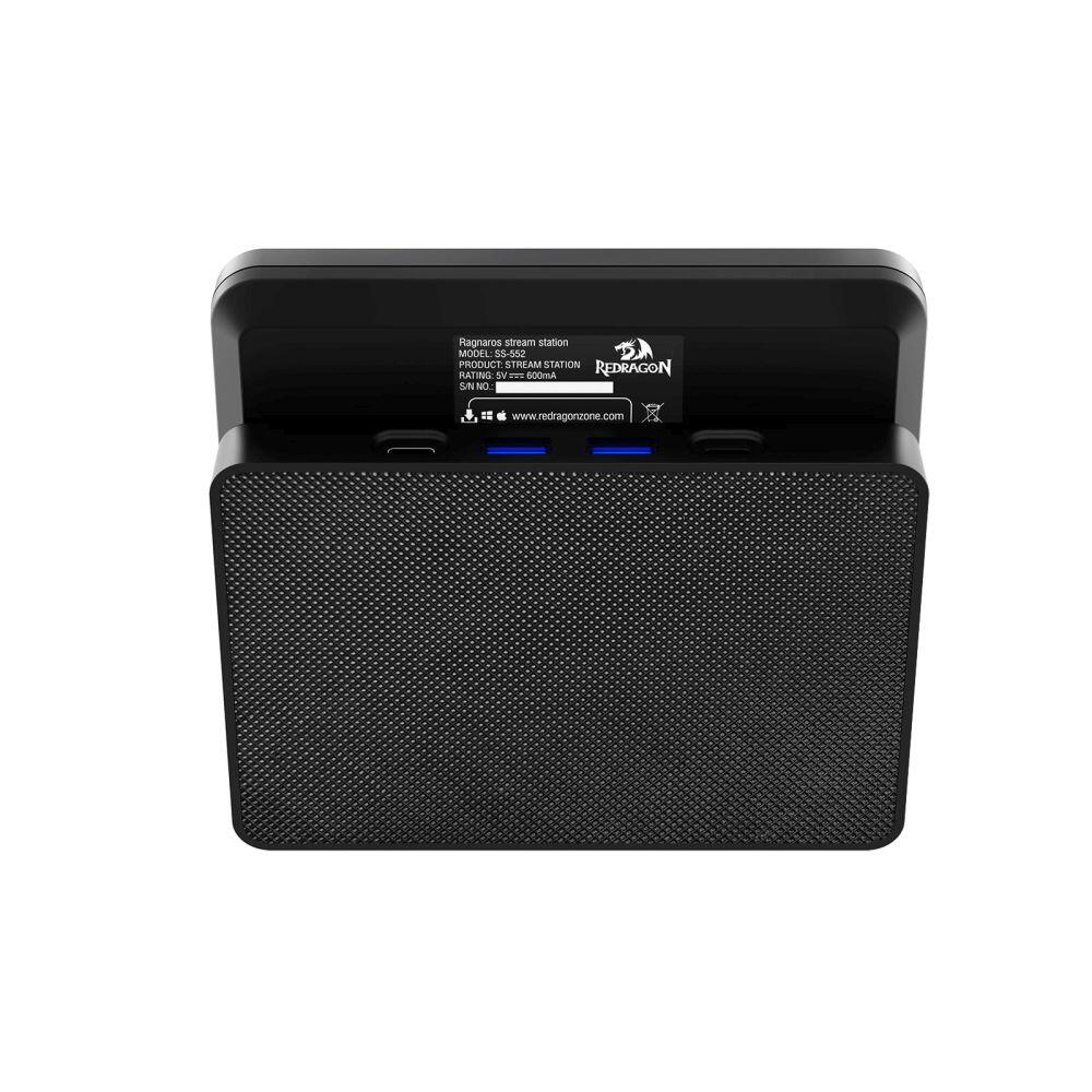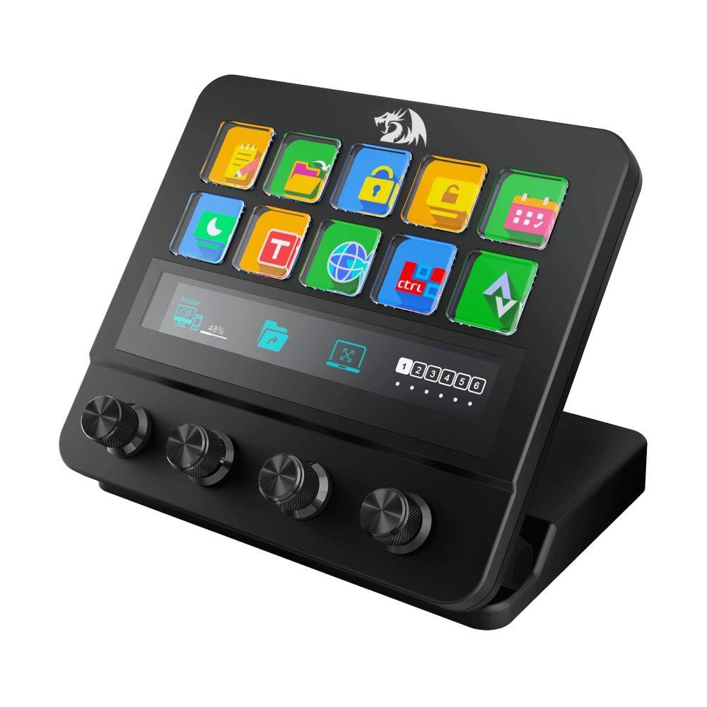 Stream station Redragon Ragnaros negru, constructie: ABS, suport reglabil integrat, 10 taste MACRO LCD programabile, display secundar cu touch pentru schimbarea profilelor, suporta 7 profiluri, 4 rotite programabile cu actiune push, fiecare buton poate avea pictograme personalizabile, aplicatie pentru configurare, plug-in-uri descarcabile pentru diverse aplicatii (Photoshop, Premiere Pro, After Effects, Blender, Twitch, etc), HUB USB 1x Type-C si 2x USB 3.0, suport, sisteme de operare compatibile: Windows, conector input: USB Type-C, dimensiuni: 199x166x80mm, greutate: 0.74kg