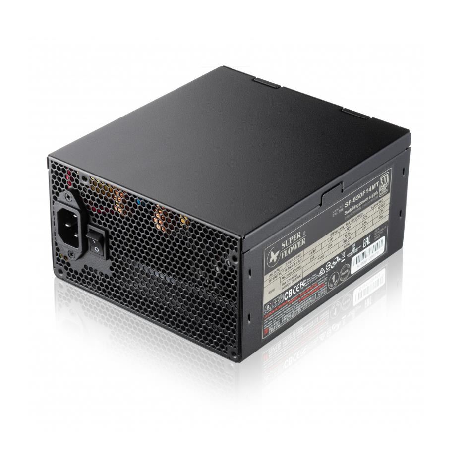 Sursa modulara Super Flower Leadex Silver 650W, certificata 80 PLUS Silver, eficienta 90%, cabluri full modulare plate pentru un wire management mai bun, single rail (54.1A), ventilator silentios de 140mm (Long Life Silent Fan) cu tehnologie ECO Intelligent Thermal Control System (ventilatorul nu incepe sa se roteasca pana ce temperatura interna a sursei nu atinge 50°C), 4x 6+2pin PCIE, 6x SATA, 3x Molex, 1x 4+4pin EPS12V, protectii OVP/OCP/OPP/SCP/UVP, Active PFC, ATX 12V v2.32, EPS 12V v2.91, SSI EPS 12V v2.92, dimensiuni: 165x150x86mm, greutate: 2.84kg, certificari: cTUVus / TUV / CB / CE / FCC / C-Tick / BSMI / RoHS / CCC