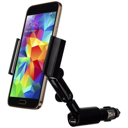 LUXA2 Cigar Clip Universal Car Mount Holder with USB Charging Port, compatibilitate: aparatele cu marimi ale ecranului intre 3.5-6 inch (latime: 55-90mm), posibilitatea rotirii ecranului 360° si ajustarea verticala a bratului 180°, sistem de montare in priza bricheta auto, ofera un port USB pentru incarcare (5V 2A), dimensiuni: 113x95x50mm, greutate: 90g