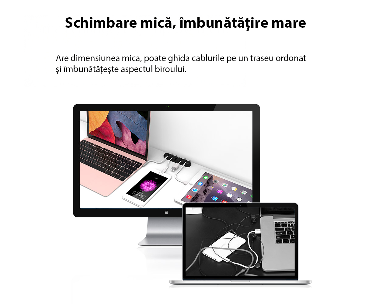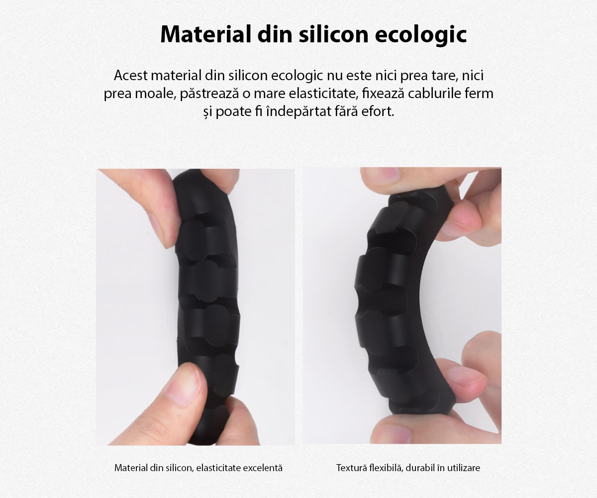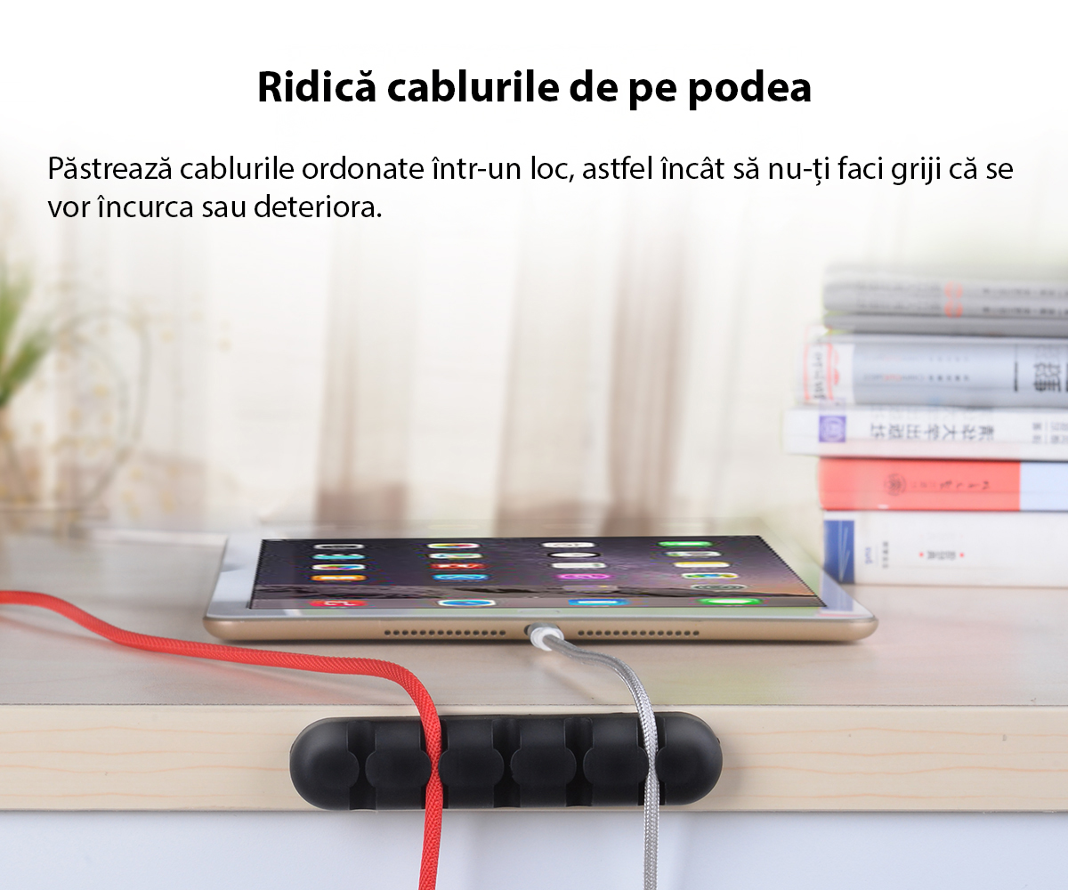 Suport cabluri Orico CBS5 negru, material: silicon, banda adeziva aplicata, cabluri compatibile: grosime sub 5mm, 5 locasuri, dimensiuni: 96x20x12mm