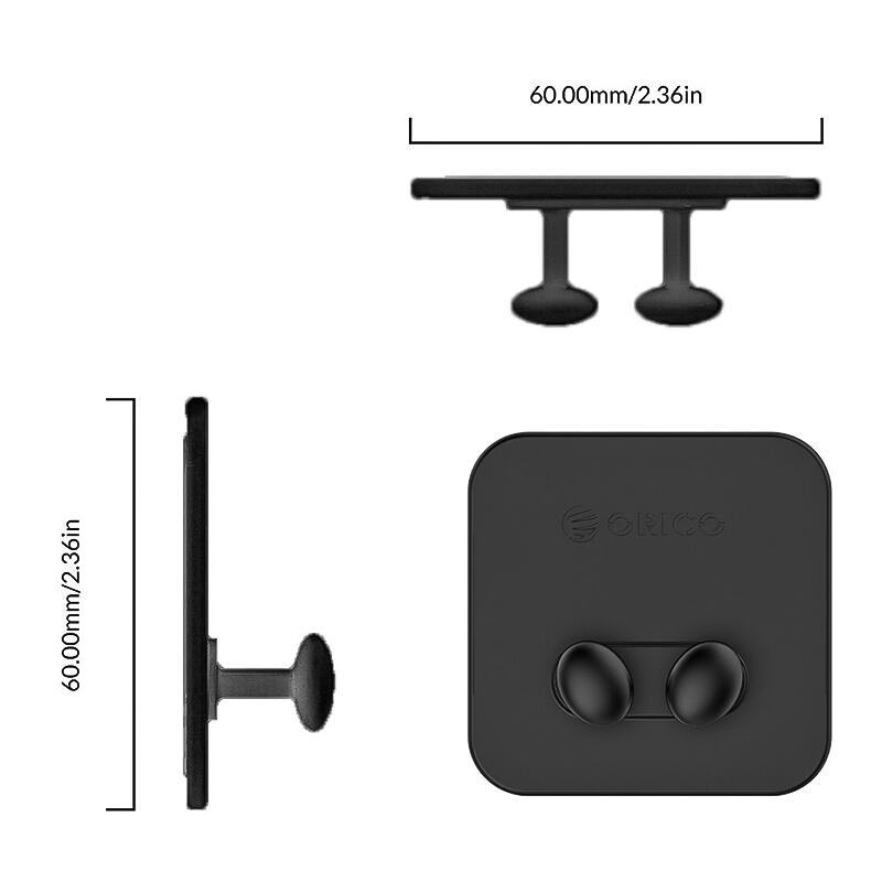 Suport cabluri Orico WT2 negru, material: silicon, banda adeziva aplicata, 1 locas pentru cablu, dimensiuni: 60x60x23mm, pachetul contine 2 suporti