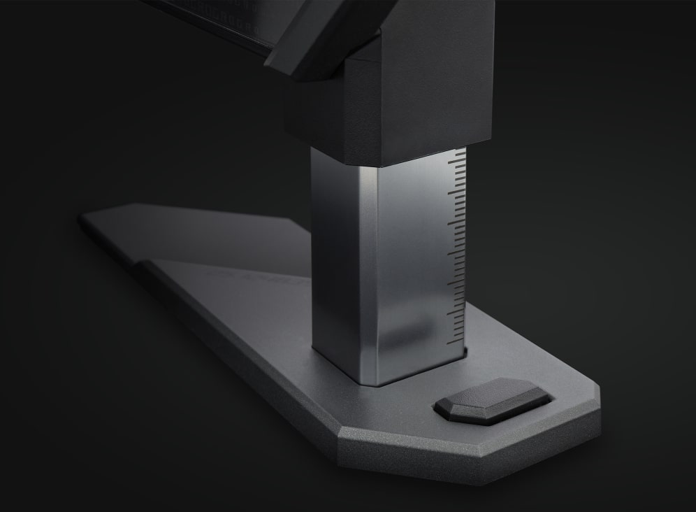 Suport placa video ASUS ROG Herculx iluminare aRGB, permite sustinerea placilor video, include nivela detasabila pentru pozitionarea corecta a placilor grafice, inaltime reglabila: 72-128 mm, iluminare aRGB compatibila cu ASUS Aura Sync, poate fi montat doar pe carcase cu Power Cover, greutate maxim suportata: 5kg, greutate: 171g