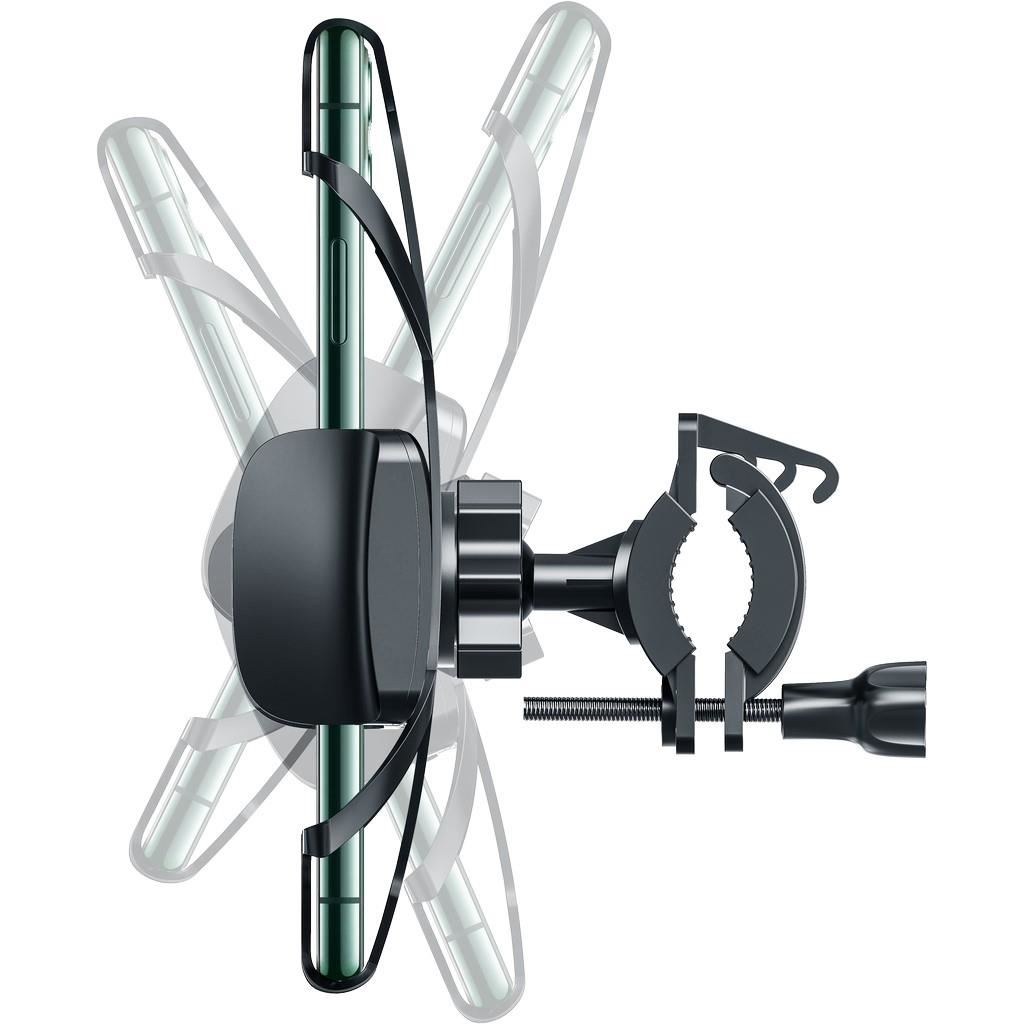Suport telefon Inter-Tech MTH-200 negru, compatibilitate: aparatele cu marimi ale ecranului intre 4.5-7 inch, posibilitatea rotirii ecranului 360° si ajustarea verticala a bratului 180°, sistem de prindere pentru ghidon, prinderi elastice pentru colturile telefonului, dimensiuni: 55 x 70 x 120mmmm, greutate: 85g