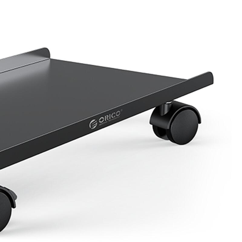 Suport unitate PC cu roti Orico CPB5 negru, material: otel, rezistenta la apa si pete, rezista la temperaturi inalte, rotile au sistem de blocare pentru a preveni deplasarea accidentala, greutate maxima suportata: 30kg, dimensiuni: 410x213x33mm, greutate: 1.1kg