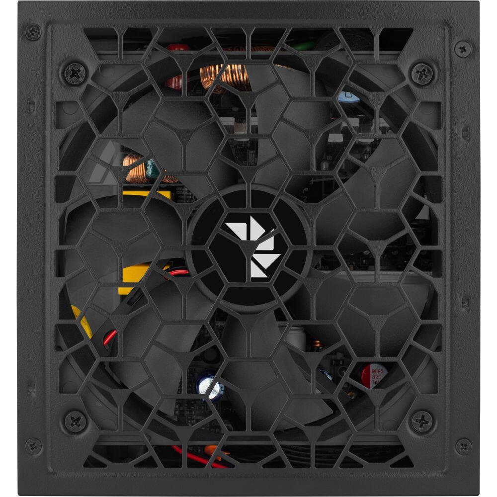 Sursa Aerocool Aero White 750 750W ATX3.1 neagra, certificata 80 PLUS White, eficienta 82%, single rail (62.5A), ventilator silentios de 120mm cu control termic automat, 2x 6+2pin PCIE, 5x SATA, 4x Molex, 1x 4+4pin EPS12V (lungime 550mm), 1x 24pin (lungime 500mm), protectii OVP/UVP/OPP/SCP/OCP/OTP, Active PFC, ATX 12V v3.1