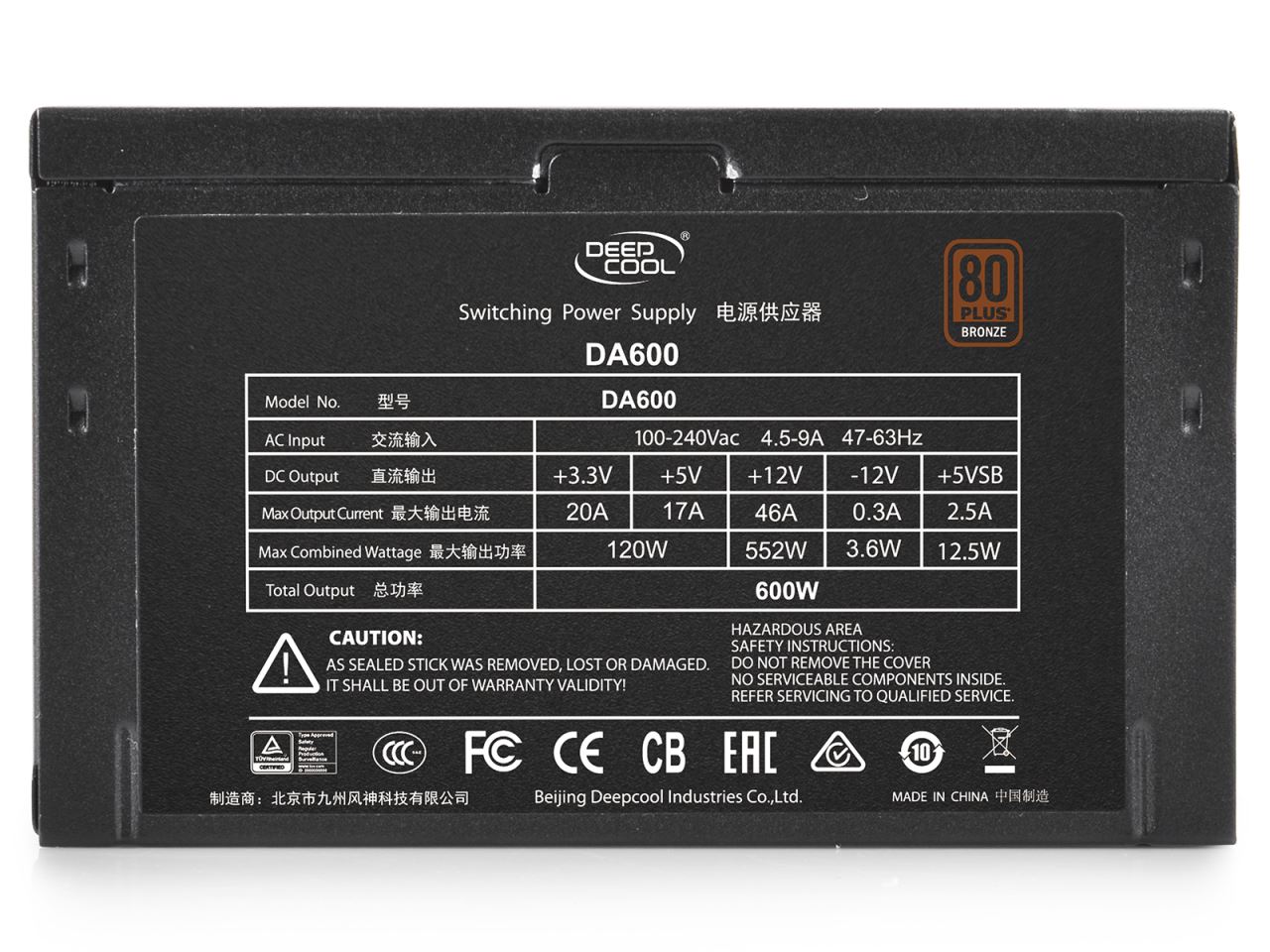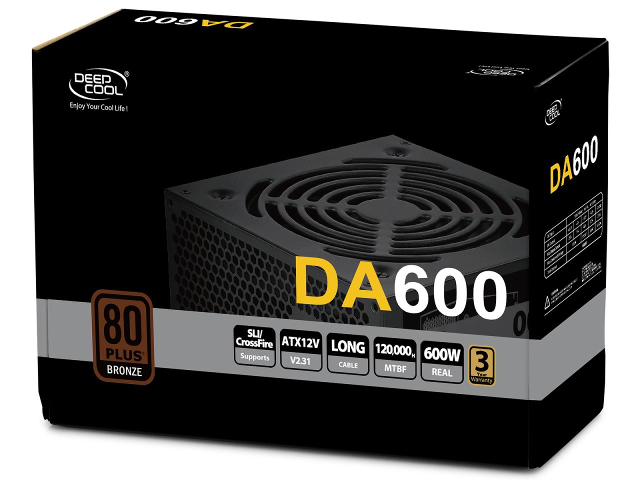Sursa full modulara Deepcool DA600-M 600W, 600W max load, single rail (46A), ventilator silentios de 120mm cu control termic automat, cabluri plate, 1x 6+2pin PCIE, 5x SATA, 3x Molex, 1x EPS 4+4pin(700mm)1x 24pin, protectii OVP / UVP / SCP / OPP, ATX 12V v2.31, dimensiuni (WxLxH): 150x140x86mm