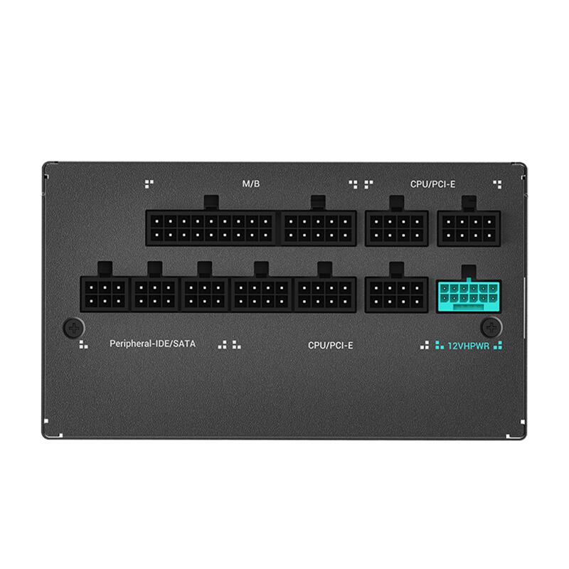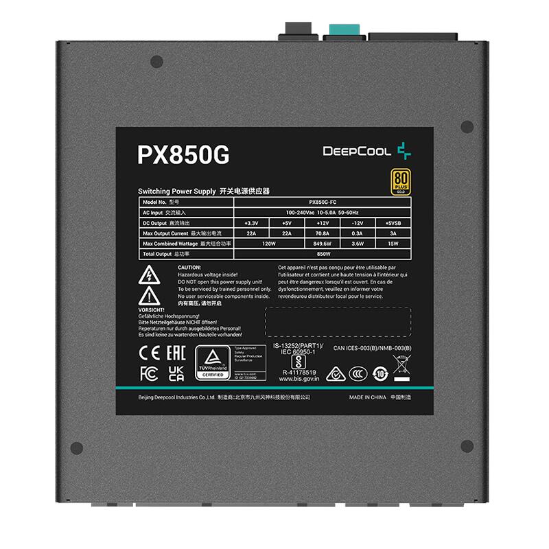Sursa full modulara Deepcool PX850G 850W neagra, certificata 80 PLUS Gold, Cybenetics_GOLD, eficienta 90%, ATX12V V3.0, single rail (70.8A), ventilator silentios de 135mm cu control termic automat, 1x 24pin (600mm), 1x 16pin PCIE, 3x 6+2pin PCIE, 8x SATA, 4x Molex, 2x 4+4pin EPS12V (700mm), OPP/OVP/SCP/OTP/OCP/UVP, Active PFC, dimensiuni (WxLxH): 150x160x86mm