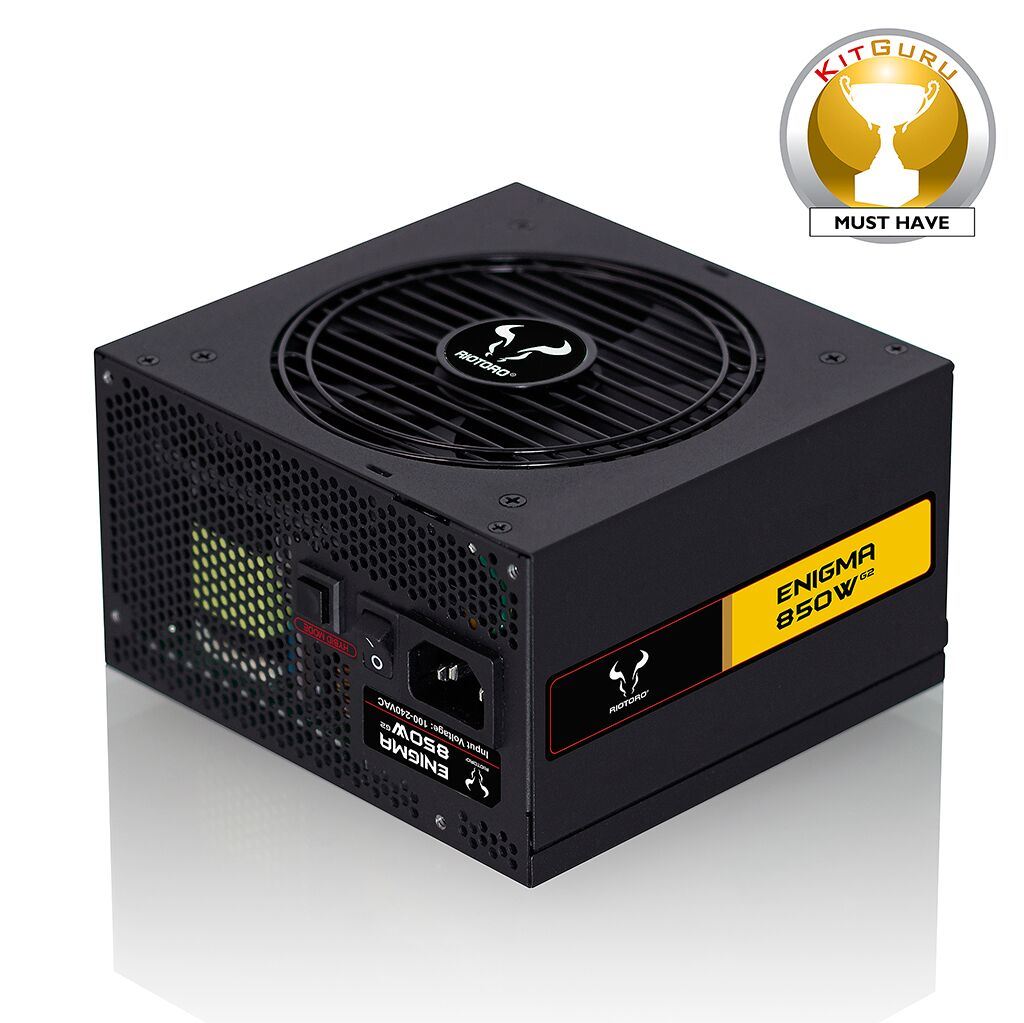 Sursa full modulara Riotoro Enigma G2 850W, certificata 80 PLUS Gold, eficienta 90%, single rail (70A), ventilator silentios de 120mm (Fluid dynamic bearing), 6x 6+2pin PCIE(675mm), 10x SATA, 5x Molex, 2x 4+4pin EPS12V(650mm), 1x Floppy, protectii OVP/OPP/SCP, Active PFC, ATX 12V v2.4, dimensiuni (LxWxH): 160x150x86mm, greutate: 3.4kg