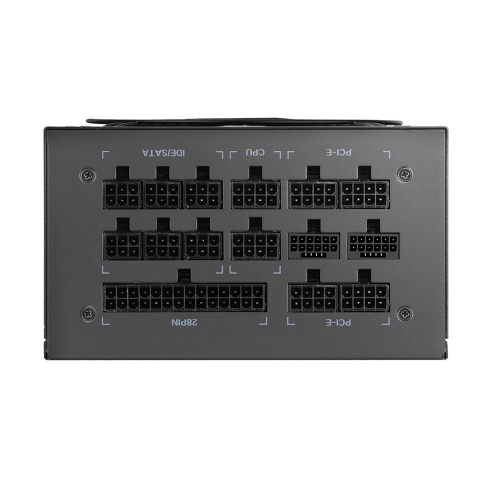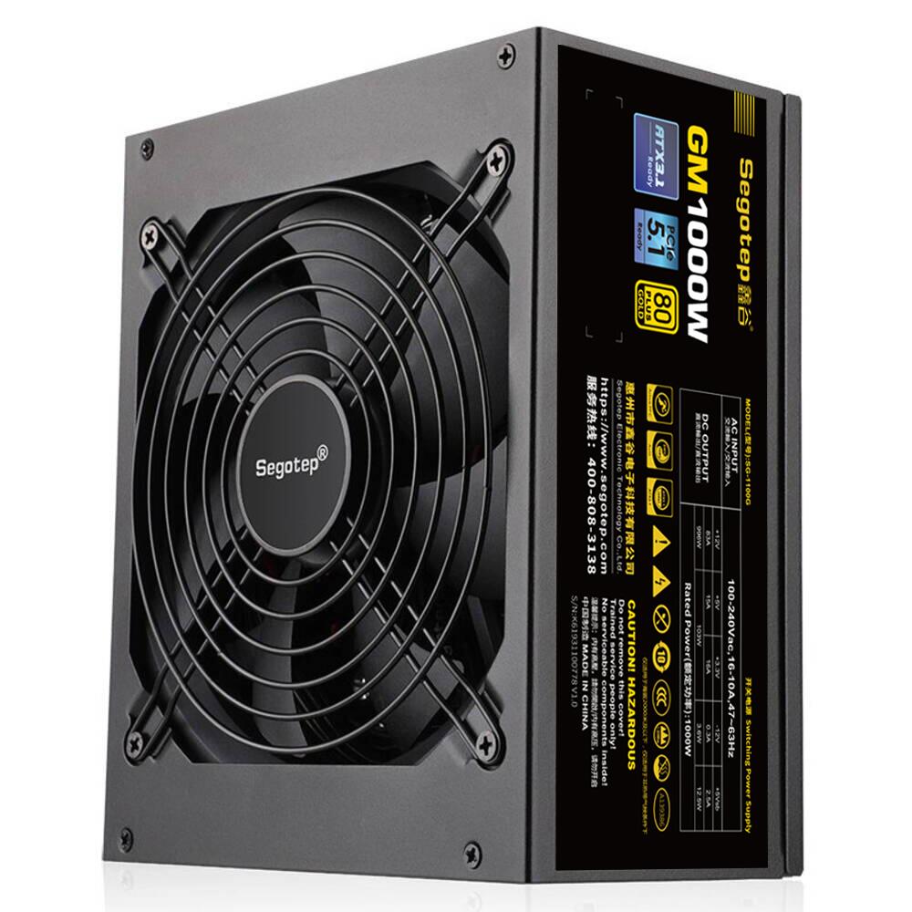 Sursa full modulara Segotep GM1000W 1000W neagra, certificata 80 PLUS Gold, ATX3.1, PCIe 5.1, eficienta 92.85%, single rail (83A), ventilator silentios de 135mm cu control termic automat, 1x 16pin PCIe 5.1, 6x 6+2pin PCIE, 12x SATA, 6x Molex, 1x Floppy, 2x 4+4pin EPS12V (lungime 700mm) 1x 24pin (lungime 600mm), protectii OVP/OCP/OPP/SCP/UVP/SPD, Active PFC, dimensiuni: 160x150x86mm