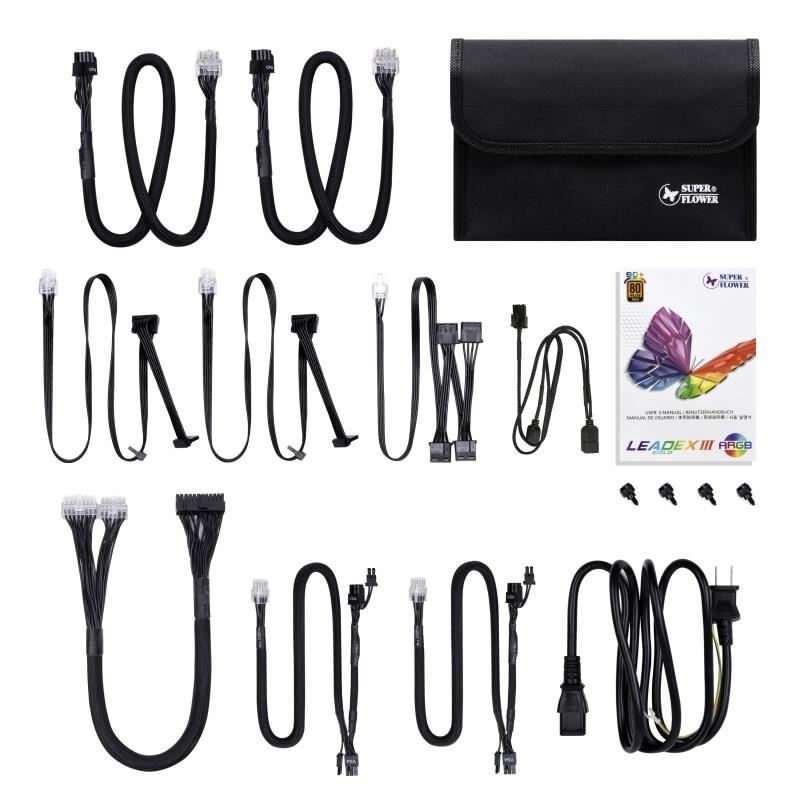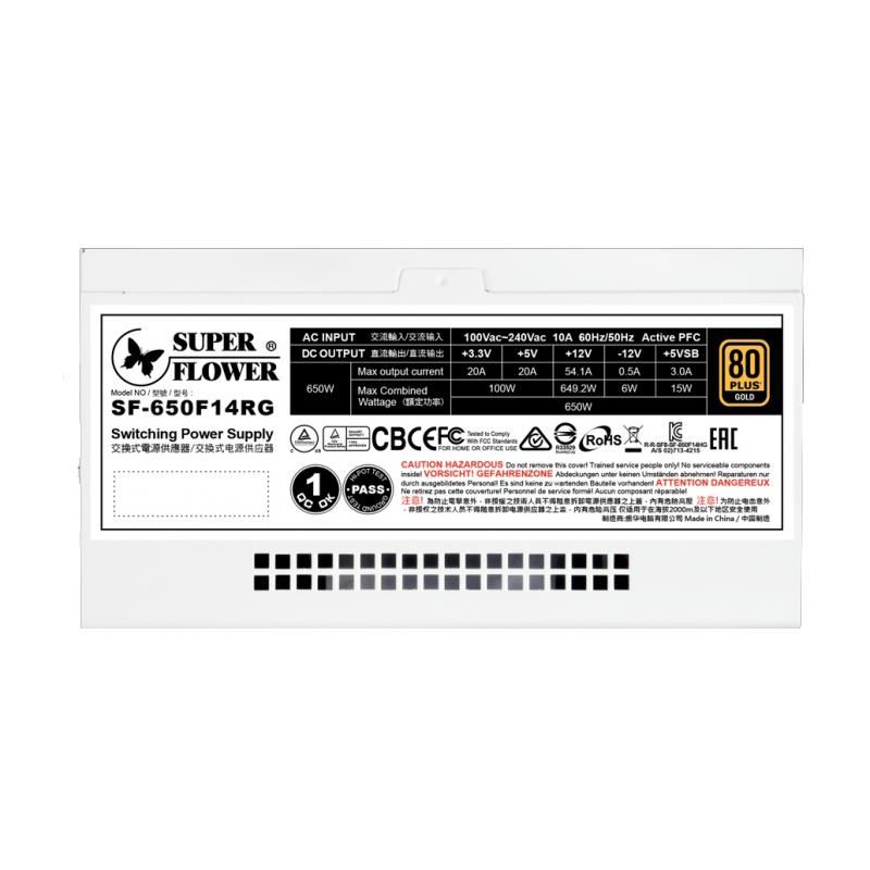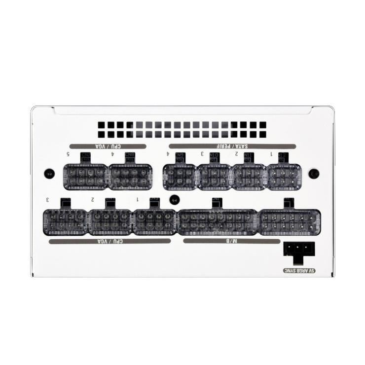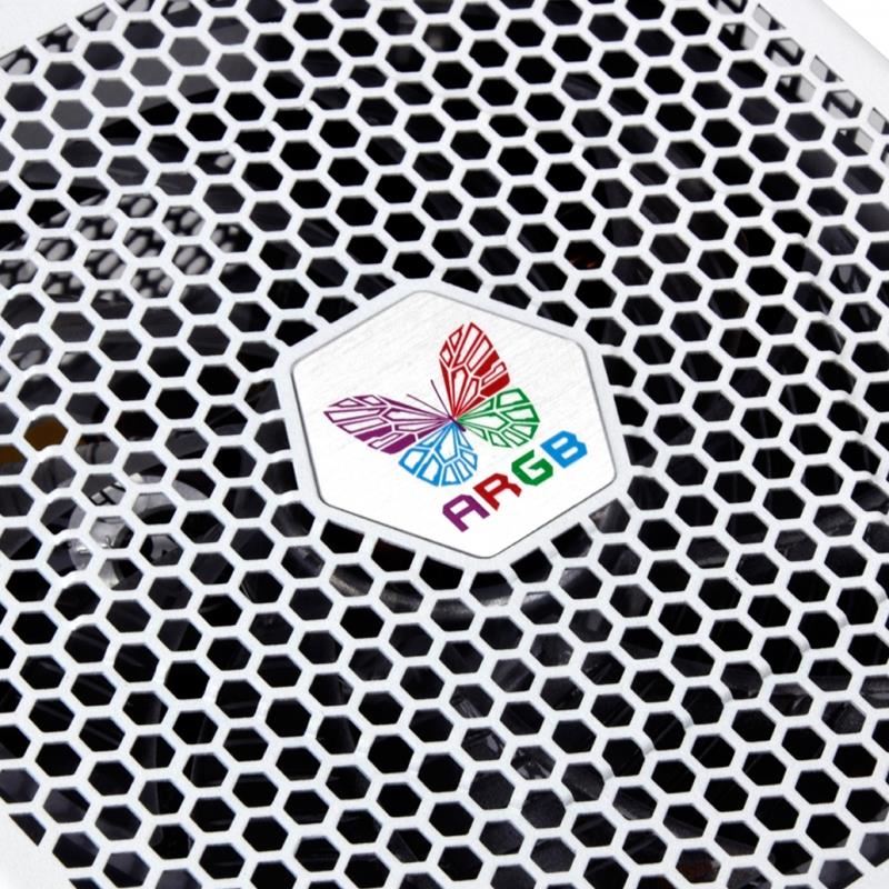 Sursa full modulara Super Flower Leadex III ARGB Gold 650W alba, iluminare aRGB (16 efecte), sincronizare compatibila cu Asus Aura Sync / MSI Mystic Light Sync / Gigabyte RGB Fusion 2.0 / ASRock Polychrome Sync, certificata 80 PLUS Gold, eficienta 92%, cabluri full modulare plate pentru un wire management mai bun, single rail (54.1A), ventilator silentios de 130mm (Fluid Dynamic Bearing) cu tehnologie ECO Intelligent Thermal Control System, condensatori japonezi, 4x 6+2pin PCIE (lungime: 550mm+150mm), 6x SATA, 4x Molex, 2x 4+4pin EPS12V (lungime: 700mm), 20+4pin (lungime: 600mm), protectii OVP / OCP / OPP / SCP / UVP / OTP, Active PFC, ATX 12V v2.92, EPS 12V v2.92, dimensiuni: 160x150x86mm, certificari: cTÜVus / TÜV / CB / CE / FCC / RCM / BSMI / RoHS/ KCC /CCC