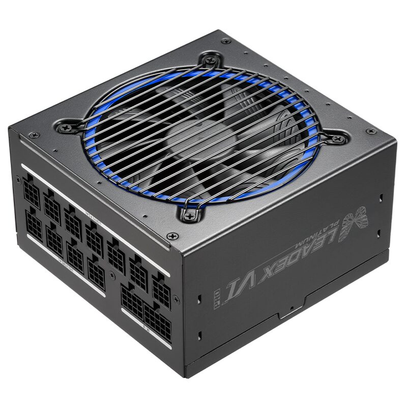 Sursa full modulara Super Flower Leadex VI Platinum PRO 1000W neagra, certificata 80 PLUS Platinum, eficienta 92%, cabluri full modulare, single rail (83.3A), ventilator silentios de 120mm (FDB) cu tehnologie ECO Fan (ventilatorul nu incepe sa se roteasca pana ce temperatura interna a sursei nu atinge 50°C), condensatori japonezi, 8x 6+2pin PCIE, 12x SATA, 4x Molex, 2x 4+4pin EPS12V (700mm), 1x 24pin (600mm), protectii OVP/OCP/Dual OPP/SCP/UVP/OTP/NLO/SIP, Active PFC, ATX 12V v2.52, EPS 12V v2.92, dimensiuni: 150x150x86mm, certificari: cTUVus / TUV / CB / CE / FCC / C-Tick / RoHS