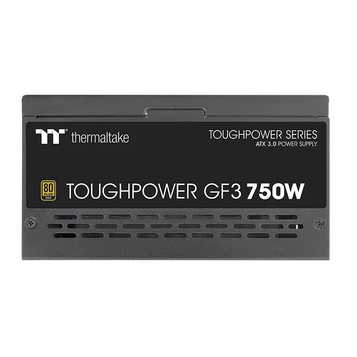 Sursa full modulara Thermaltake Toughpower GF3 750W, certificata 80 PLUS Gold, certificata CYBENETICS GOLD, eficienta pana la 90%, single rail (62.5A), ventilator silentios de 135mm cu control termic automat, cabluri plate modulare, compatibila ATX 3.0, 4x 6+2pin PCIE(650mm), 1x 16pin PCIE (500mm), 12x SATA, 4x Molex, 1x Floppy(adaptor), 2x 4+4pin EPS12V(700mm), 1x 24pin(600mm), OCP/OVP/UVP/OPP/SCP/OTP, Active PFC, dimensiuni (H x W x D): 86x150x160mm, greutate: 1.63kg