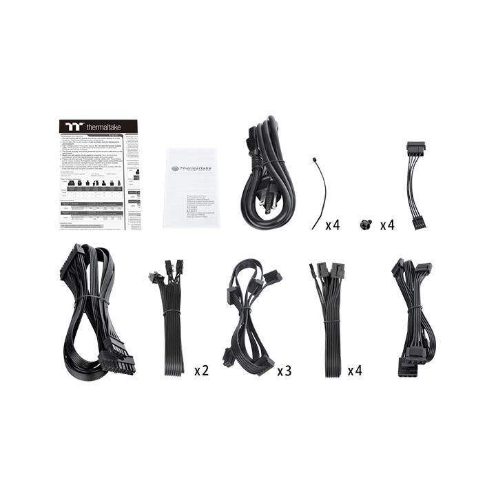 Sursa full modulara Thermaltake Toughpower PF1 1050W, certificata 80 PLUS Platinum, certificata CYBENETICS PLATIUM, eficienta: 90%, single rail (86.5A), ventilator silentios de 120mm Hydraulic Bearing, Smart Zero Fan(ventilatorul porneste cand sursa ajunge la o incarcare mai mare de 30%), 8x 6+2pin PCIE(650mm), 12x SATA, 8x Molex, 1x Floppy (cu adaptor), 2x 8pin EPS 12V(650mm), 1x 24pin ATX 12V(600mm), OVP/OCP/CE/UL/TÜV/FCC/BSMI/CCC/ EAC, Active PFC, condensatori Japonezi, dimensiuni (WxHxD): 150x86x140mm