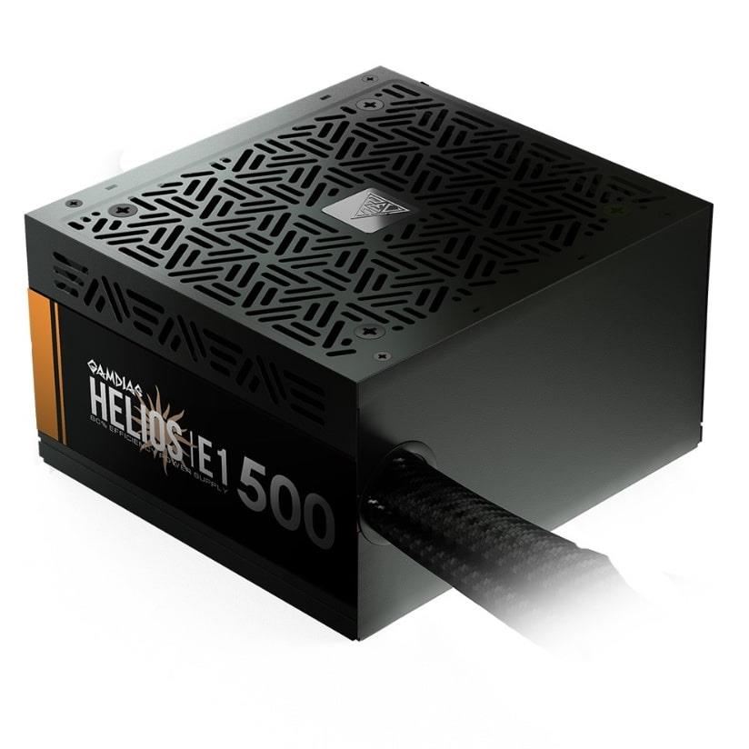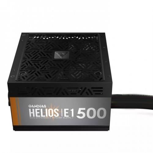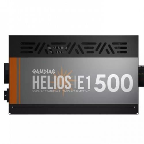 Sursa Gamdias Helios E1 500W, eficienta 80%, single rail (32A), ventilator silentios de 120mm cu control termic automat, 2x 6+2pin PCIE, 5x SATA, 2x Molex, 1x Floppy, 1x 4+4pin EPS12V, 1x 20+4pin, OVP/UVP/OPP/SCP