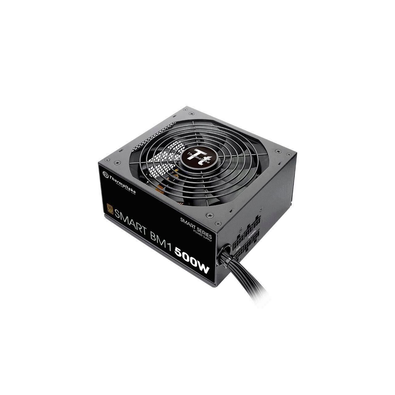 Sursa modulara Thermaltake Smart BM1 500W, certificata 80 PLUS Bronze, eficienta pan la 88%, single rail (35A), ventilator silentios de 140mm cu control termic automat, 2x 6+2pin PCIE(650mm), 6x SATA, 4x Molex, 1x Floppy(adaptor), 1x 4+4pin EPS12V(650mm), 1x 24pin(600mm), OVP/OPP/SCP, Active PFC, dimensiuni (H x W x D): 86x150x140mm