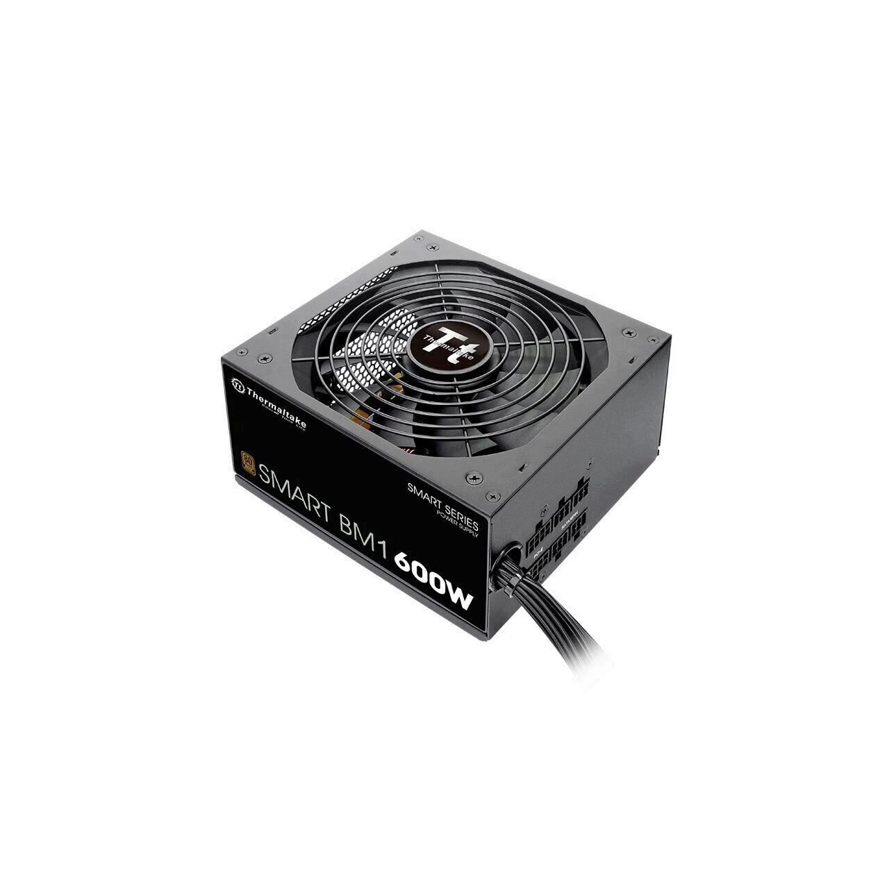Sursa modulara Thermaltake Smart BM1 600W, certificata 80 PLUS Bronze, eficienta pan la 88%, single rail (42A), ventilator silentios de 140mm cu control termic automat, 2x 6+2pin PCIE(650mm), 6x SATA, 4x Molex, 1x Floppy(adaptor), 1x 4+4pin EPS12V(650mm), 1x 24pin(600mm), OVP/OPP/SCP, Active PFC, dimensiuni (H x W x D):