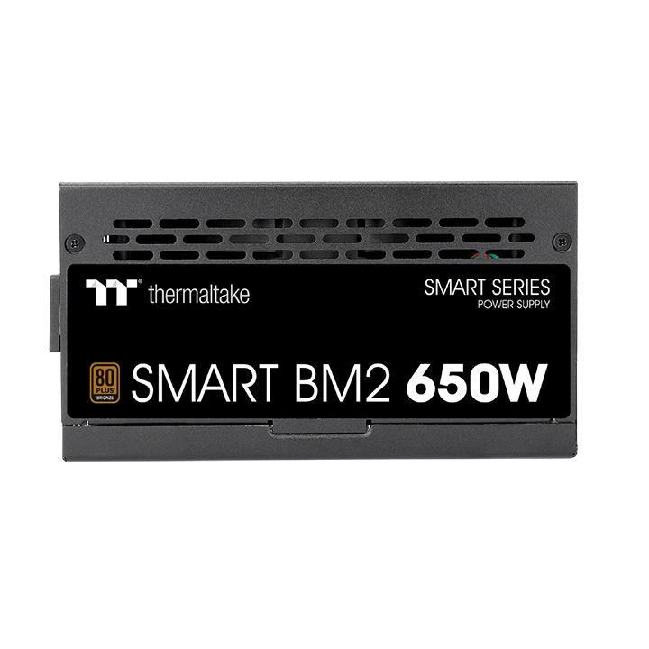 Sursa modulara Thermaltake Smart BM2 650W, certificata 80 PLUS Bronze, eficienta pan la 85%, single rail (54A), ventilator silentios de 140mm cu control termic automat, 4x 6+2pin PCIE(650mm), 6x SATA, 4x Molex, 1x Floppy(adaptor), 1x 8pin EPS 12V (600mm) + 1x 4+4pin EPS12V(150mm), 1x 24pin(600mm), OVP/OPP/SCP, Active PFC, dimensiuni (H x W x D): 86x150x160mm