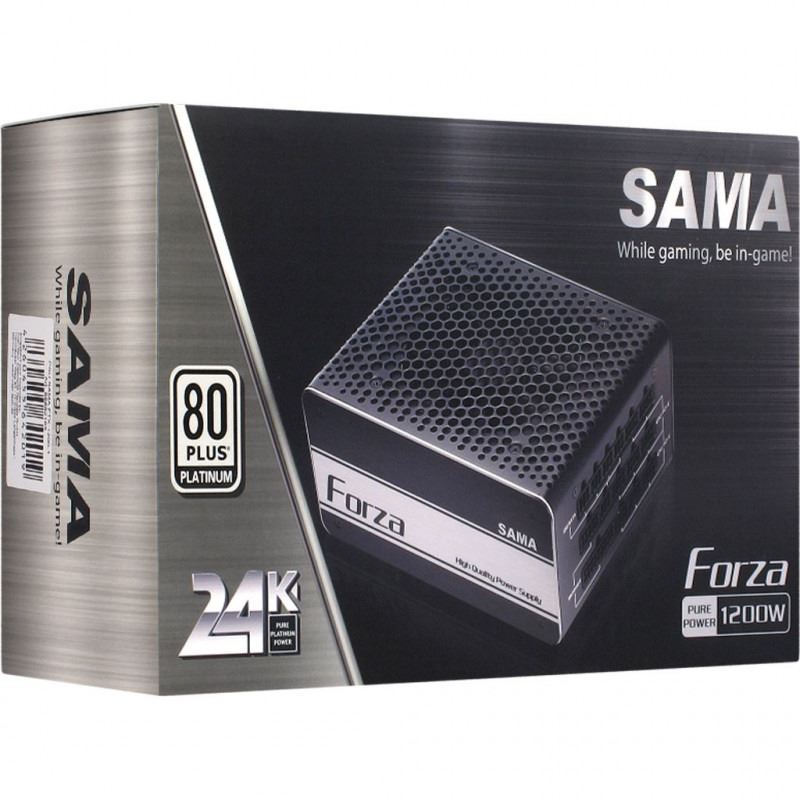 Sama FTX-1200-1 Forza 1200W PSU,certificata 80 PLUS Platinum, eficienta max. 94%, single rail (98A), ventilator silentios de 120mm cu control termic automat, 1x 20+4 pin, 8x 6+2pin PCIE, 12x SATA, 4x Molex, 1x Floppy, 2x 4+4pin EPS12V, OVP/OCP/SCP/NLP, Active PFC, dimensiuni (WxHxD): 190x86x150mm
