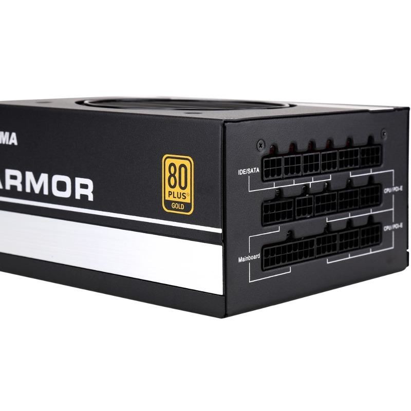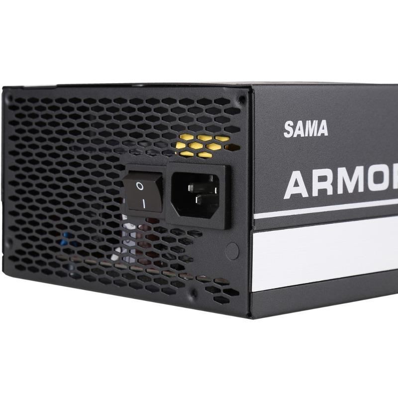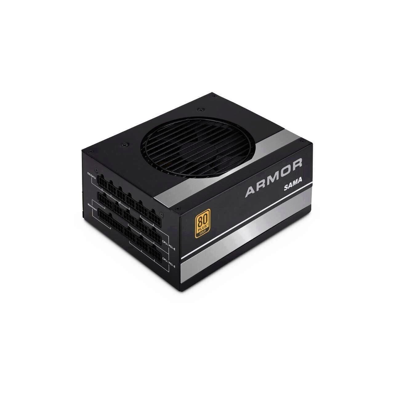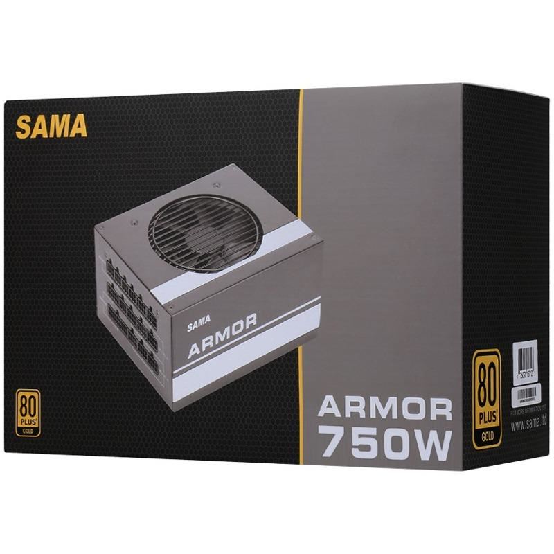 Sama HTX-750-B7 Armor 750W PSU, certificata 80 PLUS Gold, eficienta max. 90%, single rail (61A), ventilator silentios de 120mm cu control termic automat, 1x 20+4 pin, 4x 6+2pin PCIE, 8x SATA, 3x Molex, 1x Floppy, 2x 4+4pin EPS12V, OVP/OCP/SCP/NLP, Active PFC, dimensiuni (WxHxD): 180x86x150mm