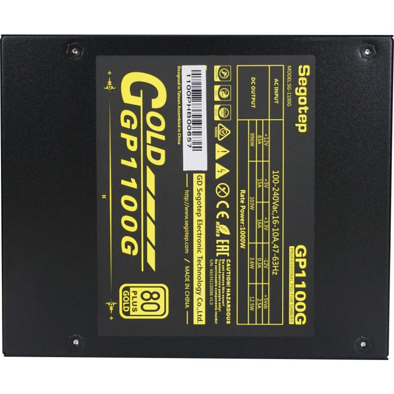 Segotep GP1100GN 1000W PSU, certificata 80 PLUS Gold, eficienta 90%, single rail (83A), ventilator silentios de 140mm, 12x 6+2pin PCIE, 7x SATA, 7x Molex, 1x 4+4pin EPS12V, protectii OVP/OCP/OPP/SCP/UVP, Active PFC, ATX 12V v2.31, EPS 12V v2.93