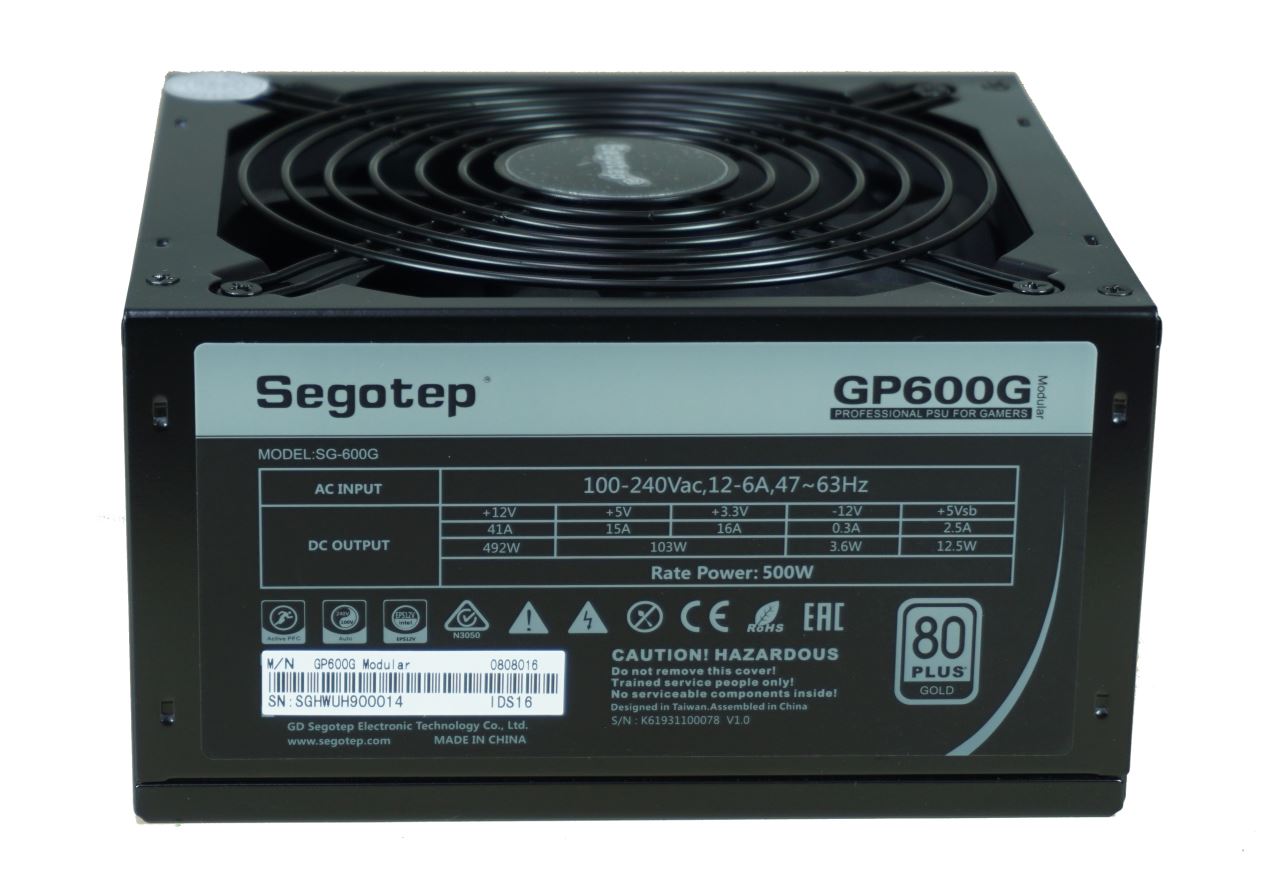 Segotep GP600G 500W Modular PSU, certificata 80 PLUS Gold, eficienta 92%, single rail (41A), ventilator silentios de 120mm cu control termic automat, 1x 24pin, 4x 6+2pin PCIE, 8x SATA, 6x Molex, 1x 4+4pin EPS12V (lungime 600mm), protectii OVP/OCP/OPP/SCP/UVP, Active PFC, ATX 12V v2.31