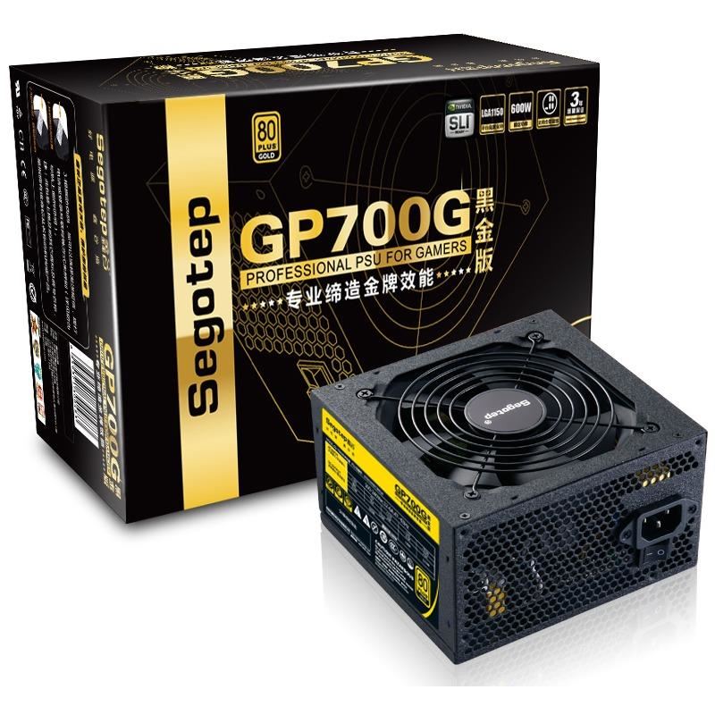 Segotep GP700G 600W PSU, certificata 80 PLUS Gold, eficienta 90.94%, single rail (50A), ventilator silentios de 120mm cu control termic automat, 4x 6+2pin PCIE, 6x SATA, 5x Molex, 1x Floppy, 1x 4+4pin EPS12V (lungime 600mm), protectii OVP/OCP/OPP/SCP/UVP, Active PFC, ATX 12V v2.31
