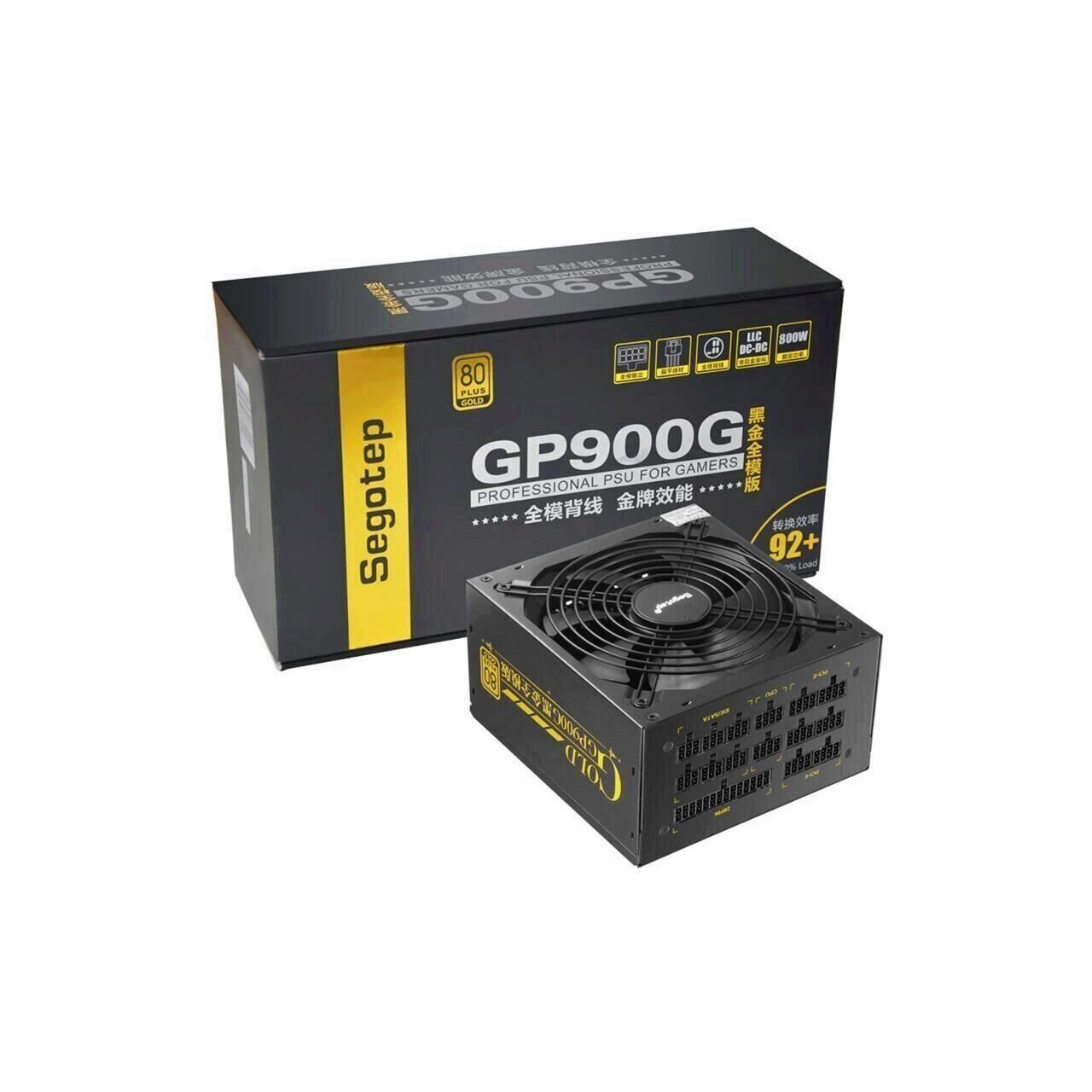 Segotep GP900G 800W Full Modular PSU, certificata 80 PLUS Gold, eficienta 92.24%, single rail (66A), ventilator silentios de 140mm cu control termic automat, 6x 6+2pin PCIE, 8x SATA, 6x Molex, 1x 4+4pin EPS12V (lungime 600mm), protectii OVP/OCP/OPP/SCP/UVP, Active PFC, ATX 12V v2.31