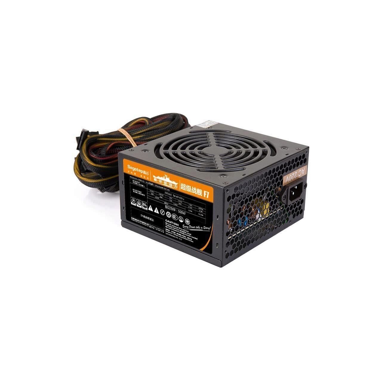 Segotep Super Battleship F7 500W PSU, dual rail (18A/18A), ventilator silentios de 120mm cu control termic automat, 2x 6+2pin PCIE, 7x SATA, 2x Molex, 1x Floppy, 1x 4+4pin EPS12V, protectii OVP/OCP/OPP/SCP/UVP, Active PFC