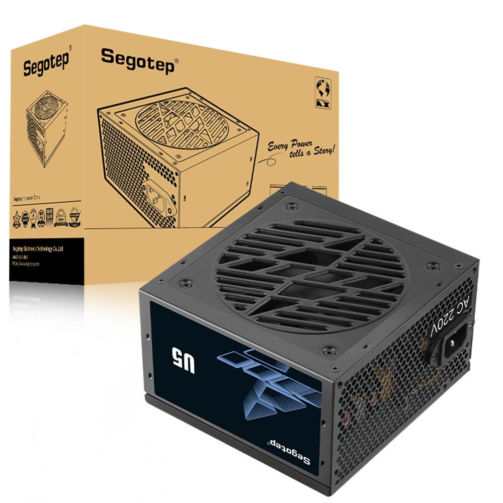 Sursa Segotep U5 500W, ventilator silentios de 120mm cu control termic automat, 2x 6+2pin PCIE, 3x SATA, 2x Molex, 1x 4+4pin EPS12V (550mm), SCP/OCP/OVP, Active PFC, dimensiuni: 150x140x85mm, greutate: 1.2Kg