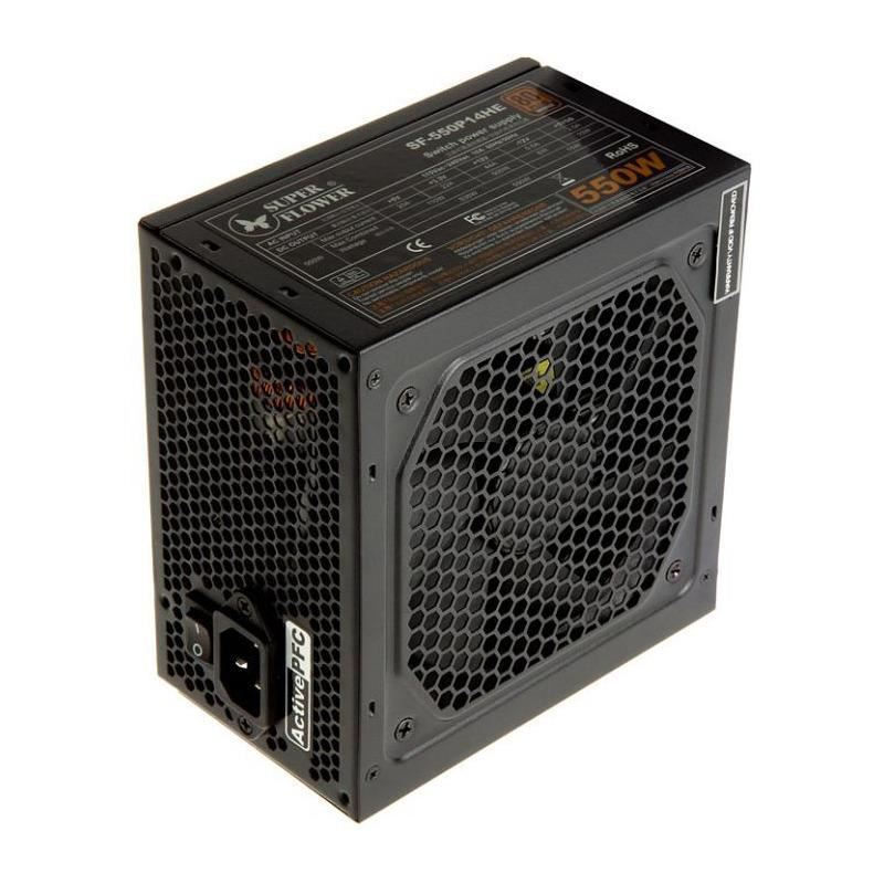 Sursa Super Flower Bronze King 550W, certificata 80 PLUS Bronze, eficienta 85%, single rail (44A), ventilator silentios de 120mm cu control termic automat, 2x 6+2pin PCIE (550mm), 6x SATA, 3x Molex, 1x Floppy, 1x 4+4pin EPS12V (600mm), 1x 24pin (560mm), protectii OVP/OCP/OPP/SCP/UVP, Active PFC, ATX 12V v2.32, EPS 12V v2.92, dimensiuni: 142x150x86mm, certificari: cTUVus / TUV / CB / CE / FCC / RCM / BSMI /RoHS / KCC / EAC