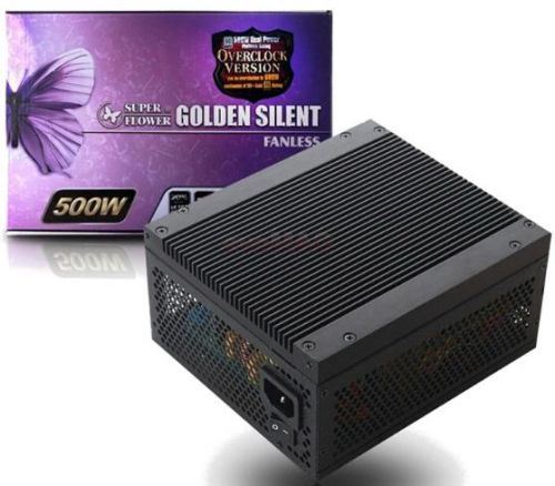 Super Flower Golden Silent 500W Modular PSU, certificata 80 PLUS Platinum, eficienta 92.88%, cabluri modulare plate pentru un wire management mai bun, single rail (41.5A), sursa fanless cu racire pasiva, condensatori japonezi (Nippon Chemi-Con), tranzistori Infineon (Cool MOS), 4x 6+2pin PCIE, 6x SATA, 5x Molex, 1x Floppy, 1x 4+4pin EPS12V, protectii OVP/OCP/OPP/SCP/UVP, Active PFC, ATX 12V v2.2, EPS 12V v2.91, SSI EPS 12V v2.92, dimensiuni: 170x150x86mm, certificari: cTUVus / TUV / CB / CE / FCC / C-Tick / BSMI / RoHS / CCC, OverClock Version: sursa poate fi “overclock-ata” pana la 600W pastrand o eficienta 80 PLUS Gold