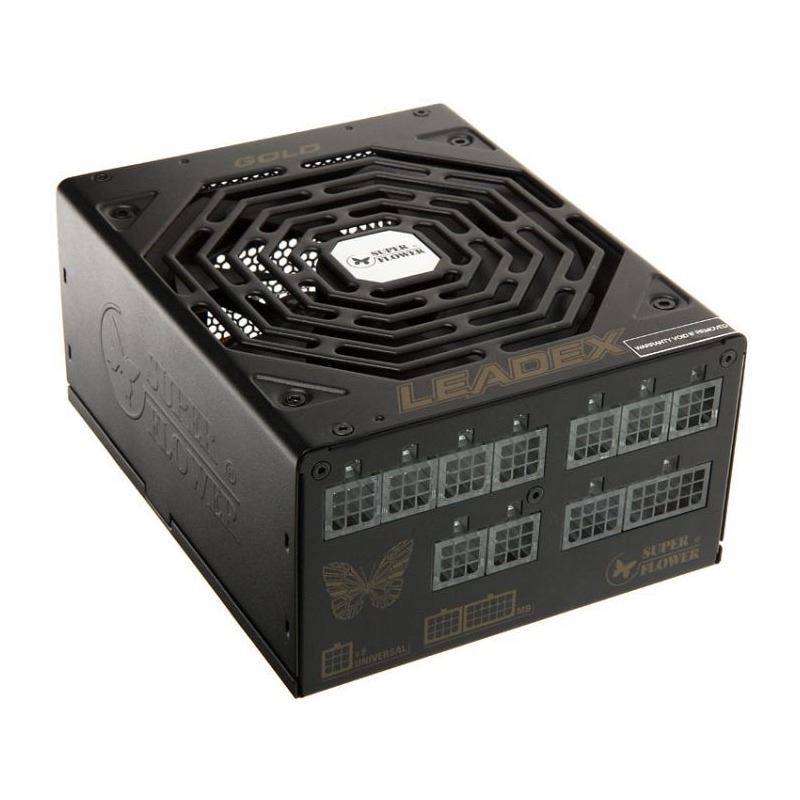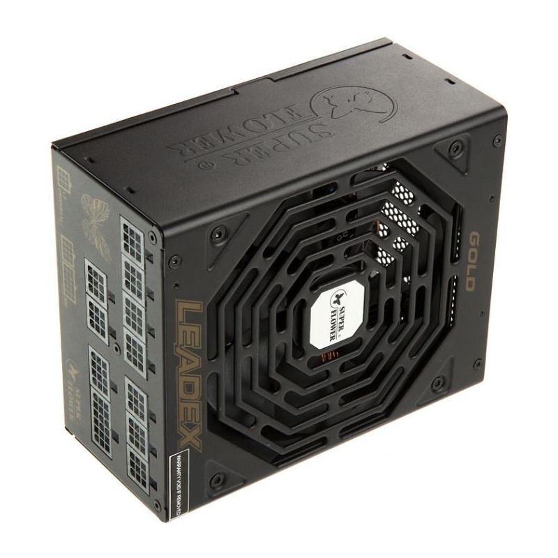 Super Flower Leadex Gold 750W Modular PSU, certificata 80 PLUS Gold, eficienta 92%, cabluri full modulare plate pentru un wire management mai bun, single rail (62.4A), ventilator silentios de 140mm (Fluid Dynamic Bearing) cu tehnologie ECO Intelligent Thermal Control System (ventilatorul nu incepe sa se roteasca pana ce temperatura interna a sursei nu atinge 55°C), condensatori japonezi (Nippon Chemi-Con), tranzistori Infineon (Cool MOS), 4x 6+2pin PCIE, 6x SATA, 5x Molex, 1x Floppy, 1x 4+4pin EPS12V, 1x 8pin EPS12V, protectii OVP/OCP/OPP/SCP/UVP, Active PFC, ATX 12V v2.2, EPS 12V v2.91, SSI EPS 12V v2.92, dimensiuni: 200x150x86mm, certificari: cTUVus / TUV / CB / CE / FCC / C-Tick / BSMI / RoHS / CCC