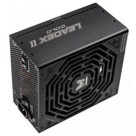 Super Flower Leadex II Gold 850W Black Modular PSU, certificata 80 PLUS Gold, eficienta 92%, cabluri full modulare pentru un wire management mai bun, single rail (70.8A), ventilator silentios de 135mm (H.D.B.) cu tehnologie ECO Intelligent Thermal Control System (ventilatorul nu incepe sa se roteasca pana ce temperatura interna a sursei nu atinge 60°C), condensatori japonezi (Nippon Chemi-Con), 4x 6+2pin PCIE, 9x SATA, 4x Molex, 1x 4+4pin EPS12V,, 1x 8pin EPS12V, protectii OVP/OCP/OPP/SCP/UVP, Active PFC, ATX 12V v2.2, SSI EPS 12V v2.92, dimensiuni (LxWxH): 165x150x86mm, certificari: cTUVus / TUV / CB / CE / FCC / C-Tick / BSMI / RoHS / CCC, greutate: 2.7kg